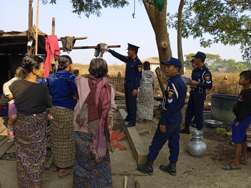ထိုသို့ စစ်ဆေးအကြံပေးရာတွင် မြို့နယ်မီးသတ်ဦးစီးဌာနမှ ဒု-မီးသတ်ဦးစီးမှူးနှင့် မီးသတ်တပ်ဖွဲ့ဝင်များ၊ ရပ်ကွက်အုပ်ချုပ်ရေးမှူးနှင့်အတူ အမှတ်(၅)ရပ်ကွက်ရှိ လယ်ကွင်းပြင်နှင့် ထိစပ်လျက်ရှိသော နေအိမ်များအား ကောက်ရိုးပြတ်များ မီးမရှို့စေရေး၊ မီးတားလမ်းများ ဖောက်လုပ်ထားရှိစေရေး၊ မီးသတိမူရေး ဆောင်ရွက်ကြစေရန် စစ်ဆေးအကြံပေးကြသည်။