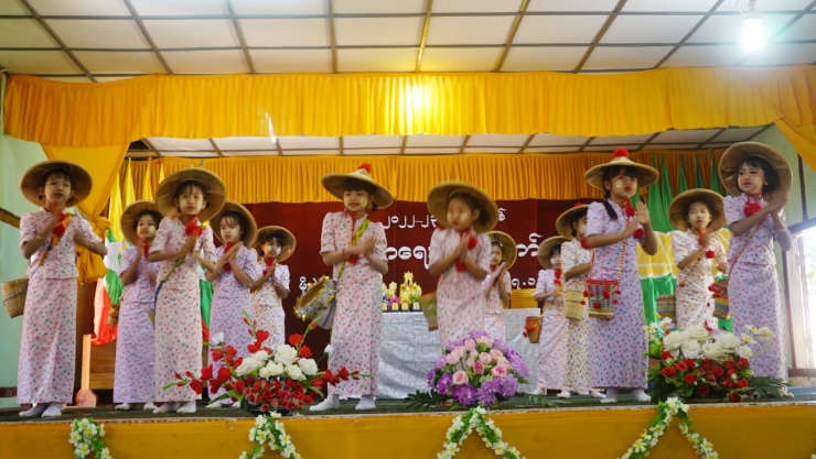 ဆက်လက်၍ မြို့နယ်ပညာရေးစုံညီပွဲတော်အခမ်းအနားကို အထက ပုလဲဆောင်ခန်းမ၌ ဆက်လက်ကျင်းပခဲ့ရာ အခြေခံပညာအထက်တန်းကျောင်းသူလေးများက ဇာတိမာန်တေးသီချင်းနှင့် သီဆိုဖွင့်လှစ်ပေးခဲ့ကြသည်။