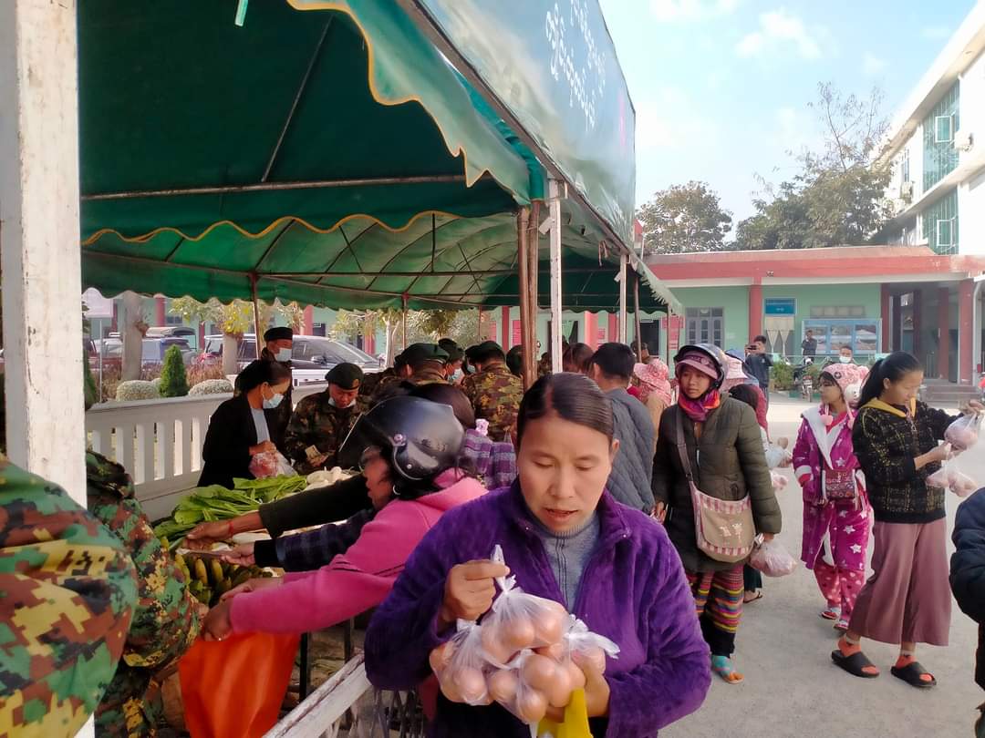 ပြည်သူများ စားသောက်ရေး အဆင်ပြေစေရန်အတွက် နယ်မြေခံတပ်မတော်သားများနှင့် အထွေထွေအုပ်ချုပ်ရေးဦးစီးဌာဝန်ထမ်းများက တန်ဖိုးသင့် တပ်မတော်စက်ရုံထုတ် အသား၊ ငါးဗူးများ၊ ခေါက်ဆွဲခြောက်၊ ဘီစကွတ်၊ စားသောက်ကုန်ပစ္စည်းများ၊ တပ်မတော်သားများ၏ စိုက်ပျိုးမွေးမြူရေးလုပ်ငန်းနှင့် ဘက်စုံမွေးမြူရေးလုပ်ငန်းမှ ထွက်ရှိသော ဆန်၊ ကြက်သား၊ ကြက်ဥ၊ ဘဲဥ၊ ဟင်းသီးဟင်းရွက်များ စသည့် စားသောက်ကုန်အမျိုးမျိုးကို ပြင်ပပေါက်ဈေးထက် သက်သာသော ဈေးနှုန်းများဖြင့် ရောင်းချပေးကြောင်း သိရသည်။
