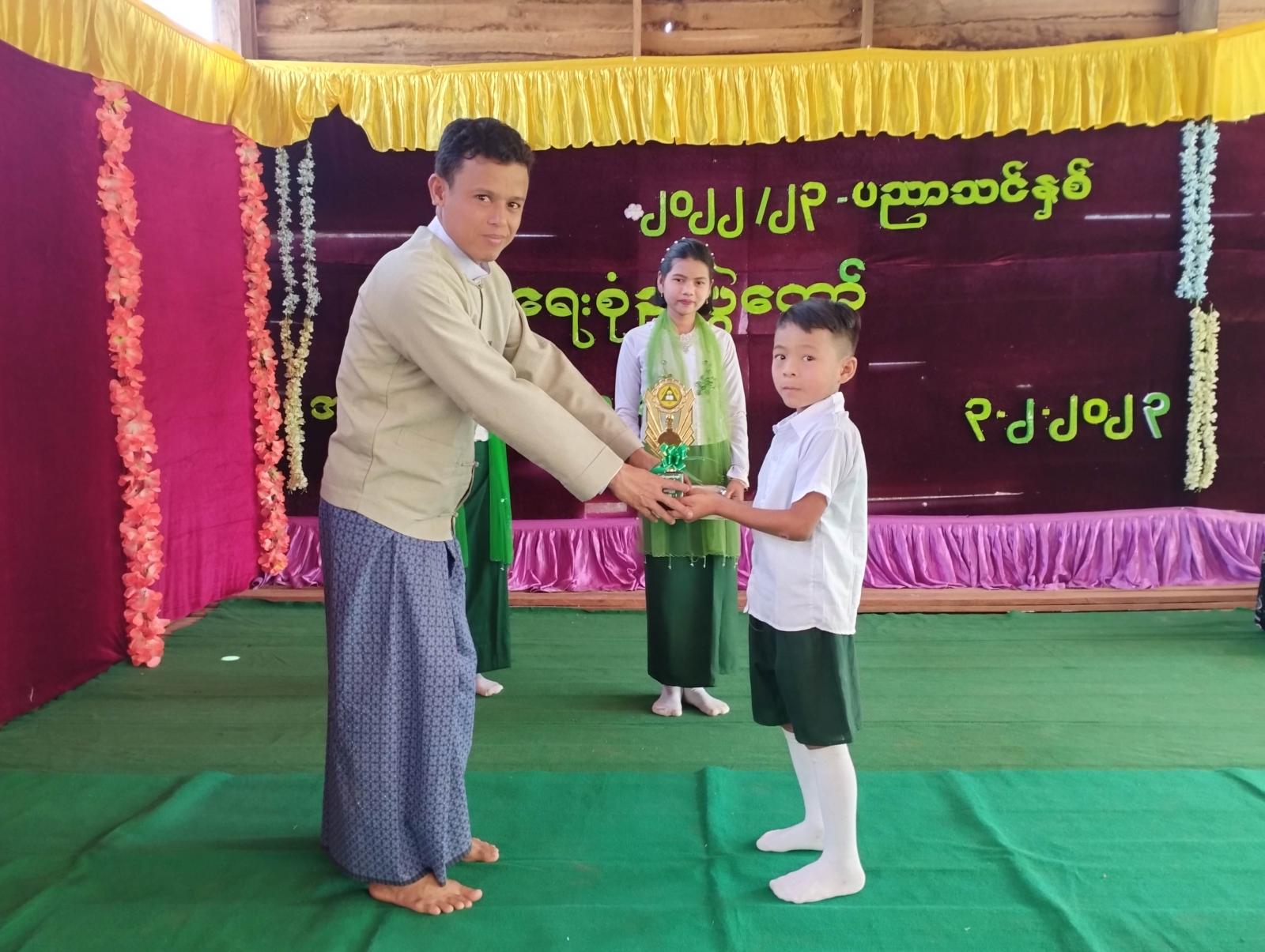 ထို့နောက်ပညာရေးစုံညီပွဲတော် အထိမ်းအမှတ် အားကစားပြိုင်ပွဲများတွင် ဆုရရှိခဲ့သည့် ကျောင်းသားကျောင်းသူများနှင့် ပညာရည်ချွန်ဆုရရှိခဲ့သည့် ကျောင်းသားကျောင်းသူများအား ဆုချီးမြှင့်ပွဲအခမ်းအနားကို ကျင်းပဆောင်ရွက်ခဲ့သည်။ အဆိုပါဆုများကို အခမ်းအနားသို့ တက်ရောက်လာကြသည့် မြို့အုပ်ချုပ်ရေးမှူးနှင့် ဌာနဆိုင်ရာတာဝန်ရှိသူများ၊ ပညာရေးမိသားစုမှ ဆရာ/ဆရာမများနှင့် အမှတ်(၁)ရပ်ကွက် ရပ်မိရပ်ဖများက အသီးသီးဆုချီးမြှင့် ပေးခဲ့ကြသည်။