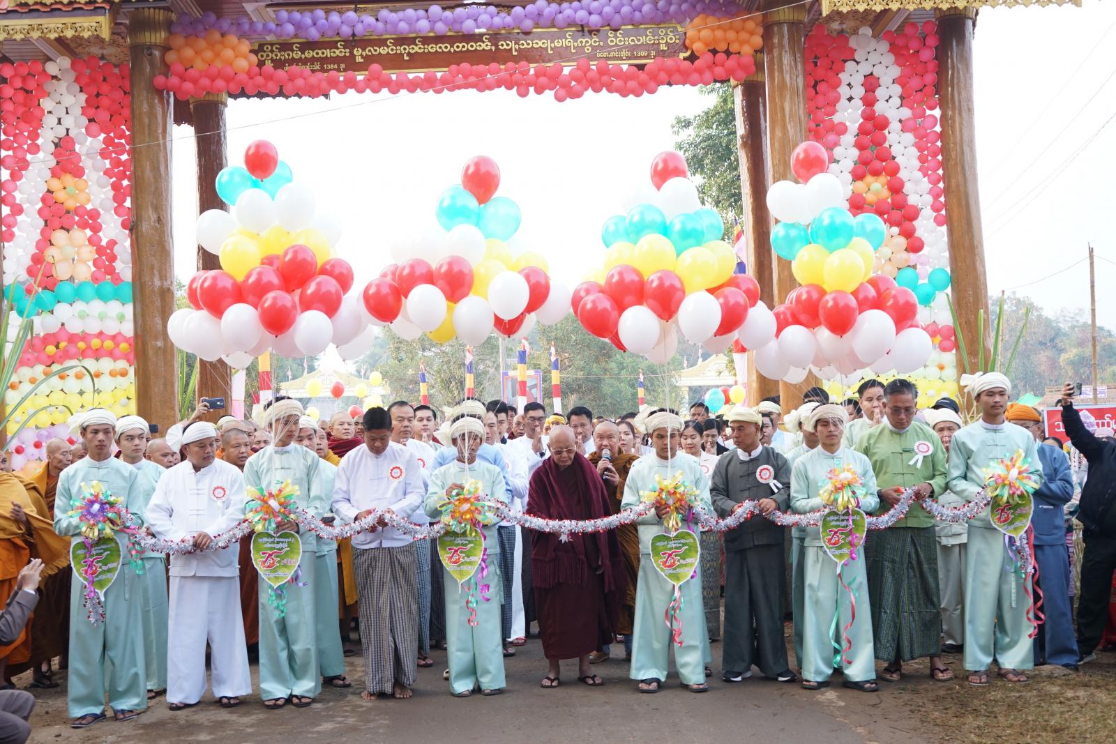 အဆိုပါဖွင့်ပွဲအခမ်းအနားကို ဆရာတော်သံဃာတော်များမှဦးဆောင်၍ နမောတဿသုံးကြိမ်ရွတ်ဆို၊ ဘုရားရှိခိုးကာ စတင်ခဲ့ကြပါသည်။ ဆက်လက်၍ ရှမ်းပြည်နယ်သံ ဃာ့အဖွဲ့ချုပ် သတ္တမမြောက်မဟာနာယကဘဒ္ဒန္တအဂ္ဂသေန၊ အဂ္ဂမဟာဇောတိကဓဇ သက်တော်ရှည်ဆရာတော်ဘုရားကြီးနှင့် အရှေ့အလယ်ပိုင်းတိုင်း စစ်ဌာနချုပ်တိုင်းမှူး ဗိုလ်ချုပ်မျိုးမင်းထွန်း၊ လင်းခေးခရိုင်အုပ်ချုပ်ရေးမှူးဦးနေဝင်း၊ ပန်လိုင်းဆိုင်(မတ်ကျန်း) ဒေသဖွံ့ဖြိုးတိုးတက်ရေးအဖွဲ့ ဥက္ကဋ္ဌဦးစိုင်းလိုင်း(လျန်း)ဆိုင်နှင့် ဟိုမိန်းဒေသဖွံ့ဖြိုးတိုးတက်ရေးနှင့် သက်သာချောင်ချိရေးအဖွဲ့မှ ဦးစိုင်းကျော်လင်းတို့က မင်္ဂလာအချိန်တွင်ဖဲကြိုးဖြတ်၍ အခမ်းအနားကို ဖွင့်လှစ်ပေးခဲ့ကြပါသည်။ ဖဲကြိုးဖတ်စဉ်တွင် သံဃတော်အရှင်သူမြတ်အပေါင်းက ဇယံတောအောင်ဂါထာ ရွတ်ဆိုပူဇော်ပေးခဲ့ကြသည်။ ဆက်လက်ပြီးဆရာတော်ဘုရားကြီးနှင့် တာဝန်ရှိသူတို့ကမုခ်ဦးနေရာ၌ အမွှေးနံ့သာများပက်ဖျန်းပေးခြင်းတို့ကို ဆောင်ရွက်ခဲ့ကြပါသည်။ ယင်းနောက်ဆရာတော်သံဃာတော်များနှင့် ပရိသတ်အပေါင်းက ဗုဒ္ဓသာသနံစိရံတိဌတု သုံးကြိမ်ရွတ်ဆိုကာ ဖွင့်ပွဲအခမ်းအနားကို ရုတ်သိမ်းလိုက်ပါသည်။
