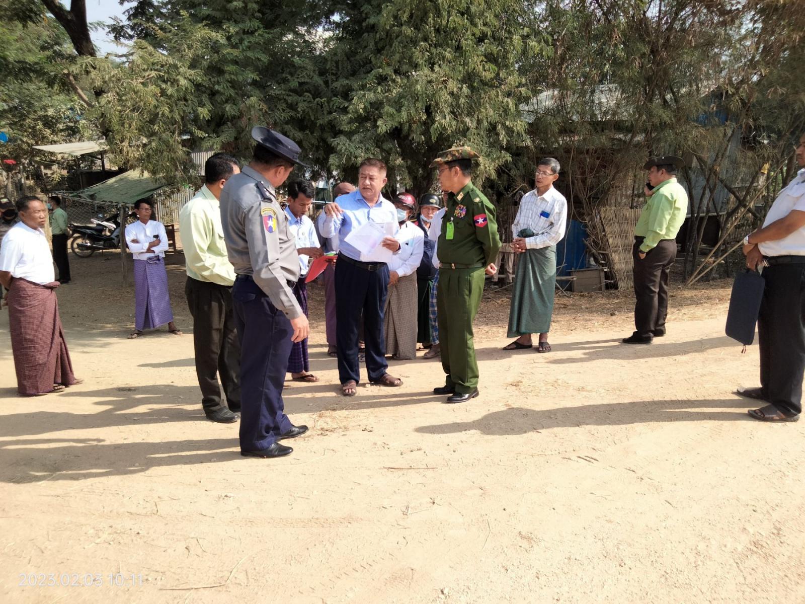 ကာကွယ်ရေးပစ္စည်းထုတ်လုပ်ရေးအရာရှိချုပ်ရုံးမှ ဌာနကြီးမှူး ဗိုလ်မှူးချုပ်သန်းထွန်း (ပြည်ခရိုင်ဖွံ့ဖြိုးတိုးတက်ရေးလုပ်ငန်းစဉ်ကြီးကြပ်မှုအဖွဲ့ခေါင်းဆောင်) သည် ဒေသကွပ်ကဲမှု စစ်ဌာနချုပ်(ပြည်) ဒေသကွပ်ကဲရေးမှူးဗိုလ်ဗိုလ်မှူးချုပ် အောင်နိုင်ဦး၊ ပြည်ခရိုင် စီမံအုပ်ချုပ်ရေးအဖွဲ့ ဥက္ကဋ္ဌ ဦးသိန်းအောင် နှင့်အဖွဲ့ဝင်များ၊ ခရိုင်အဆင့်ဌာနဆိုင်ရာ အကြီးအကဲများက ရွှေတောင်မြို့ သရက်တောရပ်ကွက် စုပေါင်းရုံး(၄)လမ်းရှိ ရိုးရာမောင် ချည်ထည်လုပ်ငန်းဆောင်ရွက်နေသည့် အခြေအနေများနှင့် ရက္ကန်းစက်ရုံ တည်ဆောက်မည့် လျားထားမြေနေရာအား ကွင်းဆင်းကြည့်ရှုစစ်ဆေးခြင်း၊ ယွန်းတန်းရပ်ကွက် ဒုရင်ဒုဘိုကျေးရွာ အုပ်စုနှင့် မြို့မကျေးရွာအုပ်စုသို့ ဆက်သွယ်သွားလာလျက်ရှိသော ဆည်မြောင်းဦးဌာနမှ တာဝန်ယူထိန်းသိမ်းသည့် တာဘောင်လမ်းယာဉ်သွားလာမှု အဆင်ပြေချောမွေ့စေရေး တာဘောင်ချဲ့ခြင်း လုပ်ငန်းဆောင်ရွက်ရန် တင်ပြနေမှုအခြေအနေများ၊ ကြာနီကန်ရပ်ကွက်ကသဲတန်းလမ်းရှိ ဦးဘာဘူနှင့်ဦးတူးတို့၏နို့စားနွားမွေးမြူးရေးခြံများသို့ သွားရောက်၍ နို့စားနွားမွေးမြူထားရှိမှု အခြေအနေများ၊ အထ(ရွှေတောင်)ကျောင်းဝန်းအတွင်း အစိုးရနည်းပညာအထက်တန်း ကျောင်း၊ စိုက်ပျိုးရေး မွေးမြူရေး အထက်တန်းကျောင်း ဆောက်လုပ်နေမှု အခြေအနေများကို ကြည့်ရှုစစ်ဆေးခဲ့ရာသို့ ရွှေတောင်မြို့နယ် စီမံအုပ်ချုပ်ရေးအဖွဲ့ ဥက္ကဋ္ဌ ဦးဟံဝင်းအောင်နှင့်အဖွဲ့ဝင်များ၊ သက်ဆိုင်ရာဌာနဆိုင်ရာများ လိုက်ပါကွင်းဆင်းခဲ့ကြပြီး လုပ်ငန်းဆောင်ရွက်နေမှု အခြေအနေများနှင့် ဆက်လက် ဆောင်ရွက်သွားမည့် အခြေအနေများအား ရှင်းလင်းတင်ပြခဲ့ရာ ဗိုလ်မှူးချုပ်သန်းထွန်းမှ လိုအပ်သည်များကို လမ်းညွှန်မှာကြားခဲ့ကြောင်း သိရသည်။