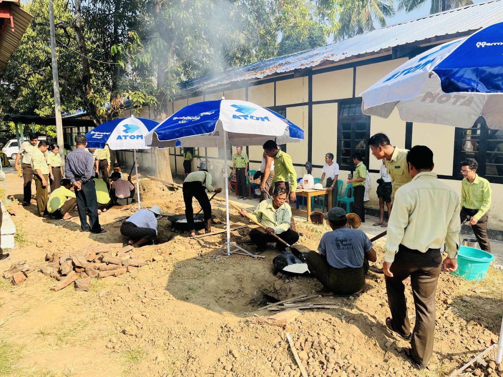 အဆိုပါစုပေါင်းနှမ်းမနဲထိုးပွဲသို့ ခရိုင်အုပ်ချုပ်ရေးမှူးဦးမြင့်သန်းဝင်းနှင့်ဇနီးဒေါ်ခတ္တာထွန်းတို့ တက်ရောက်အားပေးခဲ့ကြပြီး ပြိုင်ပွဲတွင်ခရိုင်နှင့်မြို့နယ်ရုံး ဝန် ထမ်းများက နှမ်းမနဲအပြိုင်အဆိုင်ထိုးနေမှုများအား တာဝန်ရှိသူများကလှည့်လည်အားပေးကြည့်ရှုခဲ့ပြီး မြို့နယ်အထွေထွေအုပ်ချုပ်ရေးဦးစီးဌာနရုံးမှ ပထမဆုအားလည်းကောင်း၊ ခရိုင်အထွေထွေအုပ်ချုပ်ရေးဦးစီးဌာနမှ ဒုတိယဆုအားလည်းကောင်း အသီးသီးဆွတ်ခူးရရှိခဲ့ကြကာ ဆုရရှိသူများအား ခရိုင်အုပ်ချုပ်ရေးမှူး ဦးမြင့်သန်းဝင်းနှင့် ဇနီးဒေါ်ခတ္တာထွန်းတို့မှ ဂုဏ်ပြုချီးမြှင့်ငွေများ ပေးအပ်ချီးမြှင့်ခဲ့ကြောင်းသိရသည်။