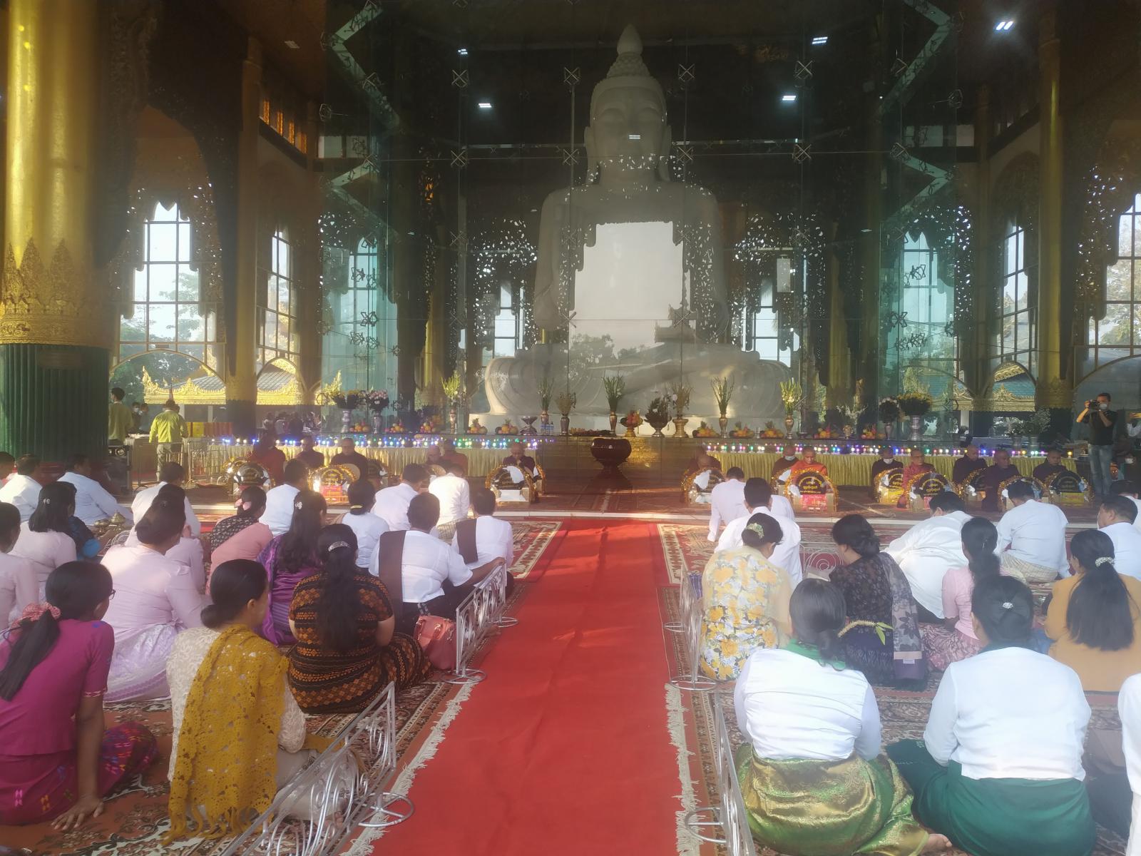 ကျင်းပရာတွင် အသောကာရုံရွှေကျင် ကျောင်းတိုက်ဆရာတော် ဘဒ္ဒန္တနန္ဒသာရထံမှ (၉)ပါးသီလခံယူ၍ ရေစက်သွန်းချ တရားနာယူပြီး ရန်ကုန်တိုင်းဒေသကြီးအစိုးရအဖွဲ့ ဝန်ကြီးချုပ်ဦးစိုးသိန်း၊ ရန်ကုန်တိုင်းစစ်ဌာနချုပ်တိုင်းမှူး ဗိုလ်ချုပ်ညွန့်ဝင်းဆွေ၊ ရန်ကုန်တိုင်းဒေသကြီး လုံခြုံရေးနှင့် နယ်စပ်ရေးရာဝန်ကြီး ဗိုလ်မှူးကြီး ဝင်းတင့်နှင့် ရန်ကုန်တိုင်းဒေသကြီးအစိုးရအဖွဲ့ဝင် ဝန်ကြီးများ၊ အင်းစိန်ခရိုင် စီမံအုပ်ချုပ်ရေးအဖွဲ့ဥက္ကဋ္ဌ ဦးသန့်ဇင်၊ အဖွဲ့ဝင်(၁) ဒုတိယဗိုလ်မှူးကြီးနေသွေး၊ ရှေ့တန်းအမှတ်(၄) တပ်ရင်းမှူး ဒုတိယဗိုလ်မှူးကြီးကျော်စိုးဦး၊ အင်းစိန်မြို့နယ်စီမံအုပ်ချုပ်ရေးအဖွဲ့ ဥက္ကဋ္ဌ ဦးစိုးမင်းထွဋ်၊ အဖွဲ့ဝင်(၁)ဗိုလ်မှူးသုခလှိုင်၊ အဖွဲ့ဝင်(၃) ဦးညီညီစိုးနှင့် မြို့နယ်အဆင့်ဌာနဆိုင်ရာများ၊ လူမှုရေး အသင်းအဖွဲ့များ၊ ကျောက်တော်ကြီးဘုရားဂေါပကအဖွဲ့ဝင်များနှင့် ဖိတ်ကြားထားသူများ၊ အလှူရှင်များနှင့် တာဝန်ရှိသူများက ပင့်သံဃာ(၁၈)ပါးအား ဆွမ်းဆန်တော်နှင့် လှူဖွယ်ပစ္စည်းများ ဆက်ကပ်လှူဒါန်းခဲ့ကြောင်း သိရသည်။