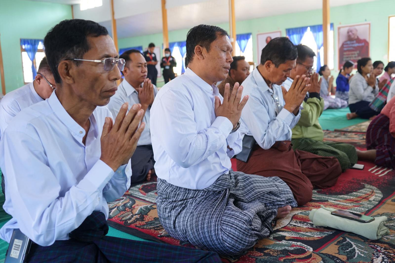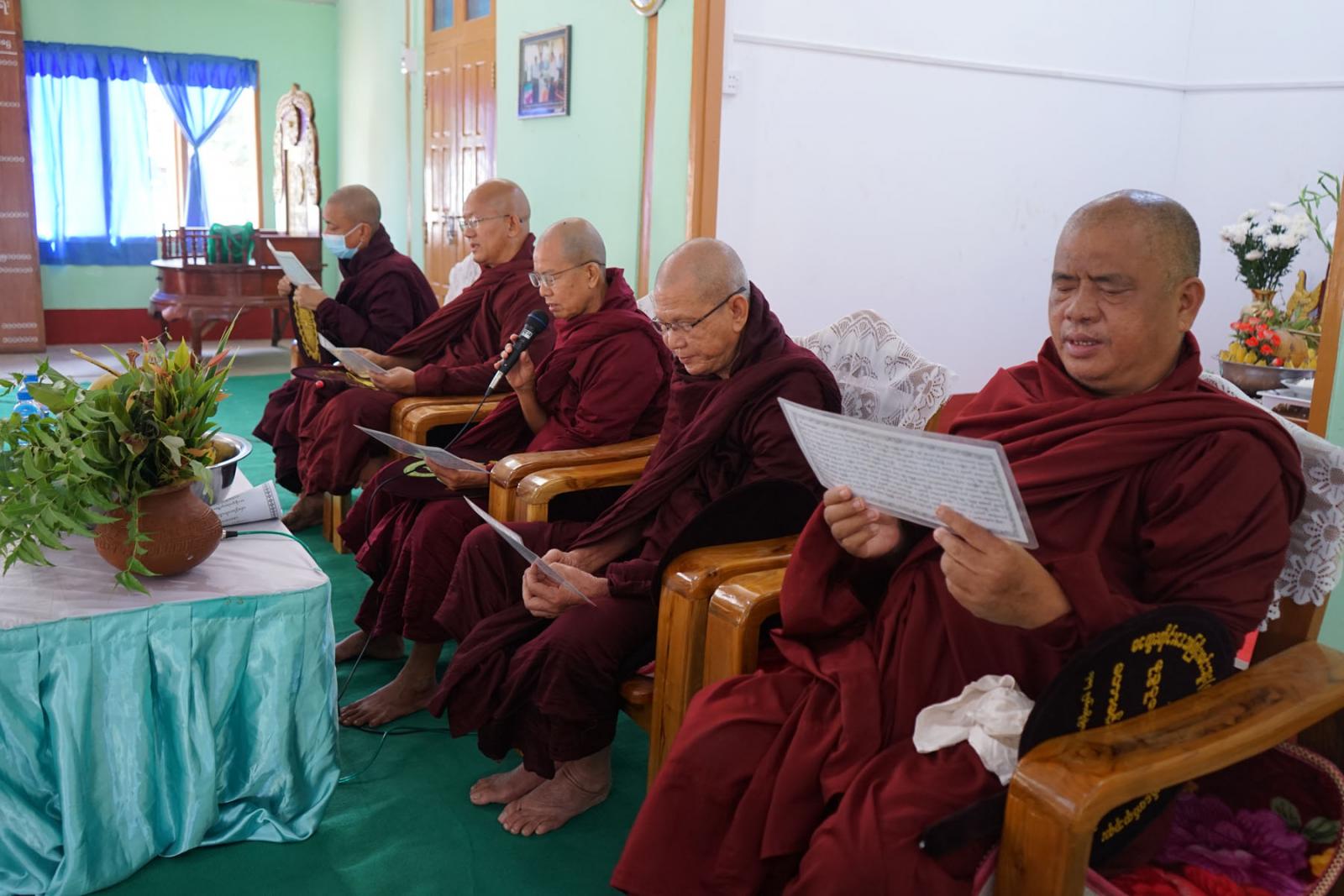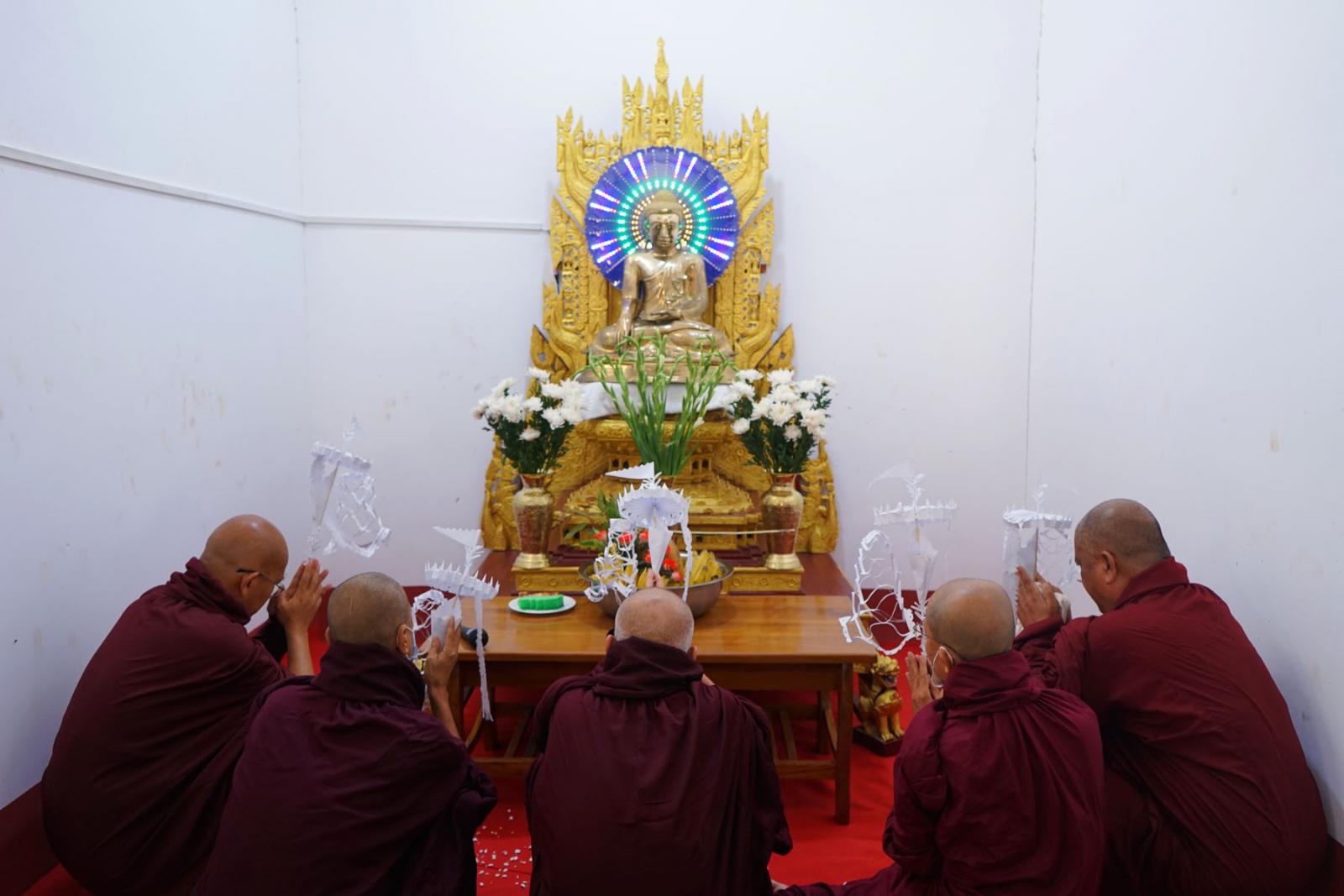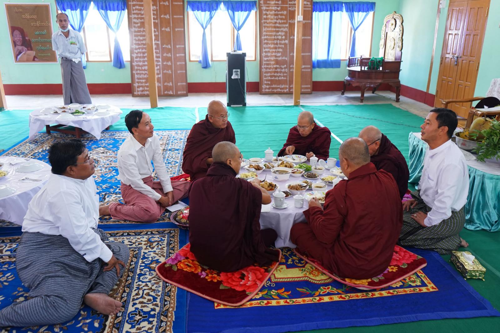 ထို့နောက် မင်းဘူးမြို့ မဟာဝိသုတာရာမတိုက်သစ် ပဓာနနာယက နိုင်ငံတော်ဗဟိုသံဃဝန်ဆောင်ဆရာတော် ဘဒ္ဒန္တဉာဏိက အမှူးပြုသော ဆရာတော်အရှင်သူမြတ်များထံမှ ငါးပါးသီလ၊ ရှစ်ပါးသီလ၊ ကမ္မဝါစာ၊ အန္တရာယ်ကင်းပရိတ်တရားတော်များနှင့် အနုမောဒနာတရားတော်များ နာယူကြည်ညို၍ လှူဖွယ်ဝတ္ထုများ ဆက်ကပ်လှူဒါန်းပြီး လှူဒါန်းမှုအစုစုတို့အတွက် ရေစက်သွန်ချအမျှအတမ်းများ ပေးဝေကာ ဆရာတော်ကြီးများအား တာဝန်ရှိသူများနှင့်အလှူရှင်များက နေ့ဆွမ်းများဆက်ကပ်လှူဒါန်းခဲ့ကြောင်း သိရသည်။