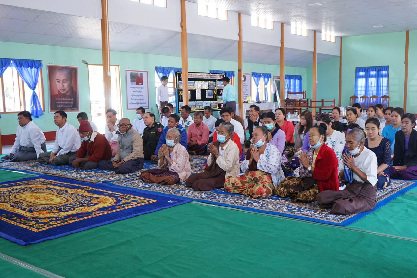 မကွေးတိုင်းဒေသကြီး၊ မင်းဘူးခရိုင်၊ မင်းဘူးမြို့၊ အမှတ်(၄)ရပ်ကွက်ရှိ မင်ဘူးမြို့ နမ္မဒါဘိုးဘွားရိပ်သာ၌ ယမန်နေ့ နံနက် ၉ နာရီခွဲအချိန်က ဘုရားအနေကဇာတင်လှူပူဇော်ခြင်းနှင့် အန္တရာယ်ကင်း ပရိတ်တရားတော်များရွတ်ဖတ်ပူဇော်ပွဲအခမ်းအနားကို ကျင်းပဆောင်ရွက်ခဲ့သည်။
