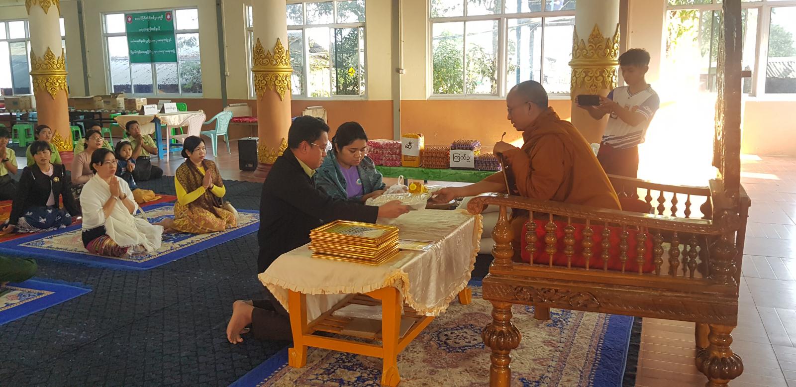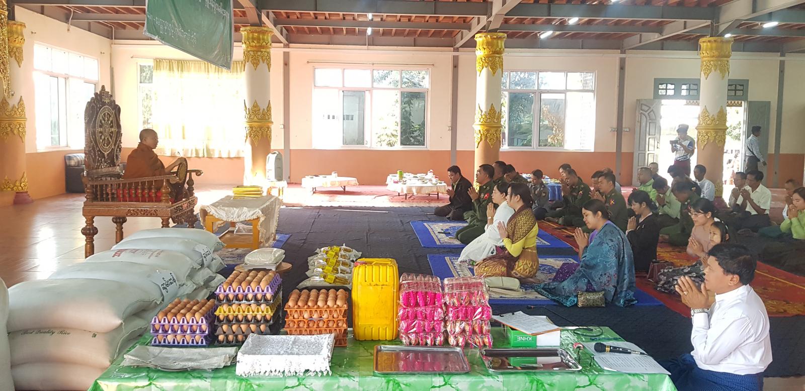 မေတ္တာဥယျာဉ် ပရဟိတကျောင်း၌ စုစုပေါင်းတန်ဖိုး ကျပ်၁၀၁၉၅၀၀ ရှိ ဆန်၁၆အိတ်၊ကြက်ဥ ၄၅၀ လုံး၊ ဆီ၁ပုံးနှင့်မုန့်များအား ဆပ်ကပ်လှူဒါန်းခဲ့ပြီး ဒုတိယတပ်နယ်မှူးနှင့် အရာရှိစစ်သည်များ၊ မြို့နယ်စီမံအုပ်ချုပ်ရေးအဖွဲ့ဥက္ကဋ္ဌ ဦးဥက္ကာသန်းနှင့် ဌာနဆိုင်ရာတာ ဝန်ရှိသူများတက်ရောက်ခဲ့ကြောင်းသိရသည်။