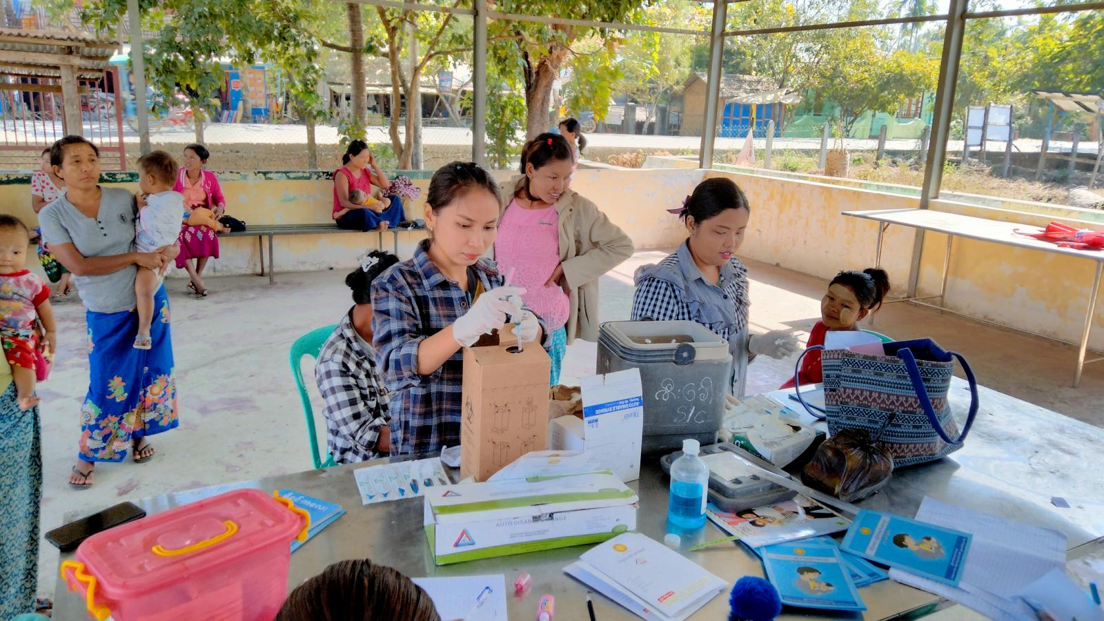 ရခိုင်ပြည်နယ်၊ ရသေ့တောင်မြို့နယ်အတွင်းရှိ ကလေးသူငယ်များအား ရောဂါဘယကင်းဝေးပြီး ကျန်းမာသန်စွမ်းသည့် လူ့စွမ်းအားအရင်းအမြစ်များအဖြစ် ပေါ်ထွန်းလာစေရန်ရည်ရွယ်၍ ရသေ့တောင်မြို့နယ်၊ ပြည်သူ့ကျန်းမာရေးဦးစီးဌာနမှဝန်ထမ်းများက မြို့ပေါ်ရပ်ကွက်များနှင့် မြို့နယ်အတွင်း ကျေးရွာအုပ်စုများရှိ အသက်(၂)နှစ်အောက်ကလေးငယ်များနှင့် ကိုယ်ဝန်ဆောင်မိခင်များအား ပုံမှန်ကာကွယ်ဆေး ထိုးနှံပေးခြင်းနှင့် ဆေးတိုက်ကျွေးခြင်းလုပ်ငန်းများကို ဆောင်ရွက်လျက်ရှိရာ ယနေ့နံနက်ပိုင်းက မိခင်နှင့်ကလေးကျန်းမာ ရေးဌာန၌ ထိုးနှံတိုက်ကျွေး ပေးခဲ့ကြောင်း သိရသည်။