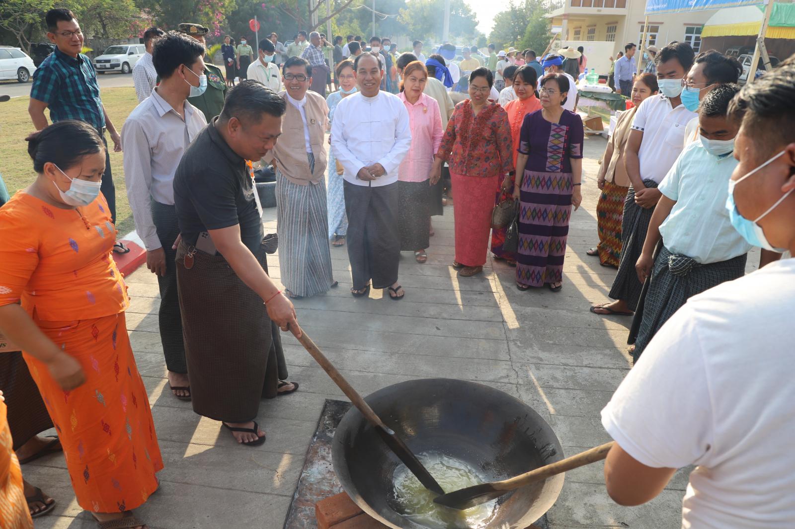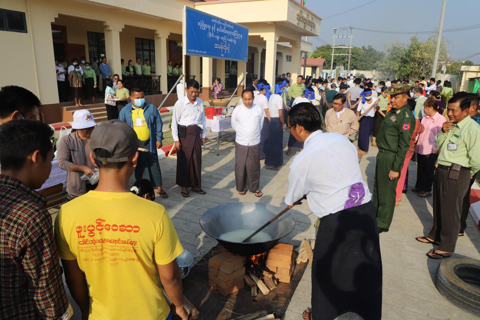 ယင်းနောက် တိုင်းဒေသကြီးဝန်ကြီးချုပ်နှင့် တိုင်းဒေသကြီး အစိုးရအဖွဲ့ဝင်များက မြန်မာ့ရိုးရာ စုပေါင်းထမနဲထိုးပွဲသို့ တက်ရောက်လာကြသော တိုင်းဒေသကြီး/ ခရိုင်/ မြို့နယ်အဆင့် ဌာနဆိုင်ရာများနှင့် ဝန်ထမ်းများ၊ မိသားစုဝင်များနှင့်အတူ တပျော်တပါး ထမနဲများသုံး ဆောင်ခဲ့ကြောင်း သိရသည်။