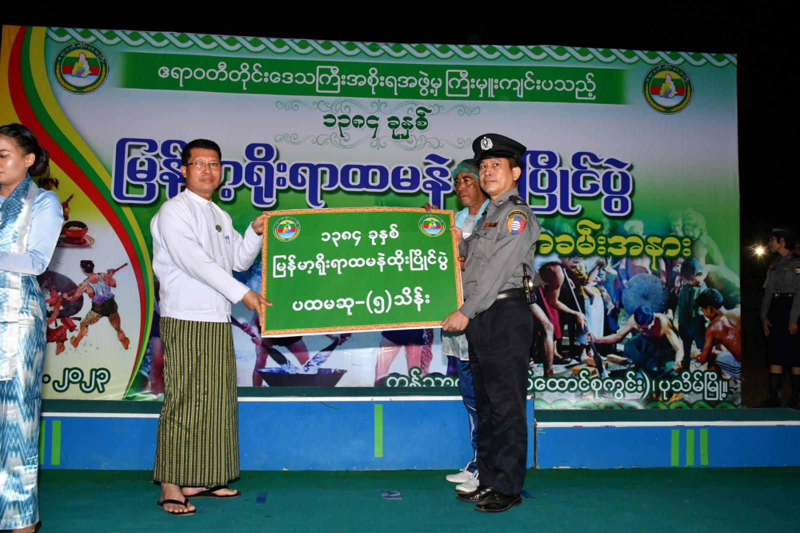 ရှေးဦးစွာ ပြိုင်ပွဲအား တိုင်းဒေသကြီး ဝန်ကြီးချုပ်ဦးတင်မောင်ဝင်းသည် လူမှုရေးရာဝန်ကြီး၊ လမ်းပန်းဆက်သွယ်ရေးဝန်ကြီးတို့နှင့် အတူဖဲကြိုးဖြတ်ဖွင့်လှစ်ပေးပြီးနောက် ဝန်ကြီးချုပ်က မင်္ဂလာငွေမောင်းအား တီးခတ်၍ ပြိုင်ပွဲစတင်ကြောင်းကြေငြာပေးပြီး ပြိုင်ပွဲဝင်များ၏ ယှဉ်ပြိုင်နေမှုများအား လှည့်လည်ကြည့်ရှုအားပေးခဲ့သည်။ အဆိုပါ ထမနဲထိုးပြိုင်ပွဲသို့ အနောက်တောင်တိုင်းစစ်ဌာနချုပ် အသင်း(၁) သင်း၊ ဌာနဆိုင်ရာ(၁၆)သင်း၊ ရပ်ကွက်(၁၅) သင်း စုစုပေါင်း(၃၂)သင်းတို့က ပါဝင်ယှဉ်ပြိုင်ခဲ့ကြပြီး ပြိုင်ပွဲတွင် နှစ်သိမ့်ဆုရရှိသည့် အသင်းများကို တာဝန်ရှိသူအသီးသီးကလည်းကောင်း၊ တတိယဆုရရှိသည့် တိုင်းဒေသကြီး အကျဉ်းဦးစီးဌာနအသင်းအား လူမှုရေးရာဝန်ကြီးကလည်းကောင်း၊ ဒုတိယဆုရရှိသည့် တိုင်းဒေသကြီး အထွေထွေအုပ်ချုပ်ရေးဦးစီးဌာနအသင်းအား စီးပွားရေးရာဝန်ကြီးက လည်းကောင်း၊ ပထမဆုရရှိသည့် တိုင်းဒေသကြီးရဲတပ်ဖွဲ့မှူးရုံးအသင်းအား ဝန်ကြီးချုပ်ကလည်းကောင်း ဂုဏ်ပြုဆုငွေနှင့် ဆုဖလားများအား ပေးအပ်ချီးမြှင့်ခဲ့ကြသည်။ ကျင်းပခဲ့သည့် ထမနဲထိုးပြိုင်ပွဲတွင် တိုင်းဒေသကြီးအစိုးရအဖွဲ့မှ ပထမဆုရရှိသည့် အသင်းအား ဆုငွေ(၅)သိန်းကျပ်၊ ဒုတိယဆုရရှိသည့်အသင်းအား ဆုငွေ(၃)သိန်းကျပ်၊ တတိယဆုရရှိသည့် အသင်းအား ဆုငွေ(၂)သိန်းကျပ်နှင့် နှစ်သိမ့်ဆုအတွက် ဆုငွေ (၁)သိန်းကျပ်တို့အား ချီးမြှင့်ခဲ့ကြောင်း သိရသည်။