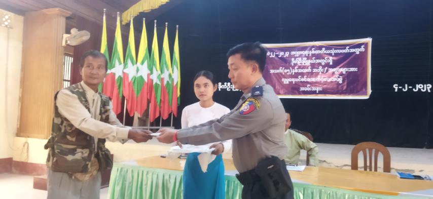 အဆိုပါ အခမ်းအနားတွင် မြို့နယ်စီမံအုပ်ချုပ်ရေးအဖွဲ့ဥက္ကဋ္ဌ ဦးကျော်ဆန်းဦးနှင့်အဖွဲ့ဝင်များ ၊မြို့နယ်အမျိုးသမီးရေးအဖွဲ့ဥက္ကဋ္ဌဒေါ်သင်းသင်းခိုင်နှင့်ရပ်ကွက်/ကျေးရွာအုပ်ချုပ်ရေးမှူးများမှတဆင့် ထောက်ပံ့ပေးအပ်ခဲ့သည်။