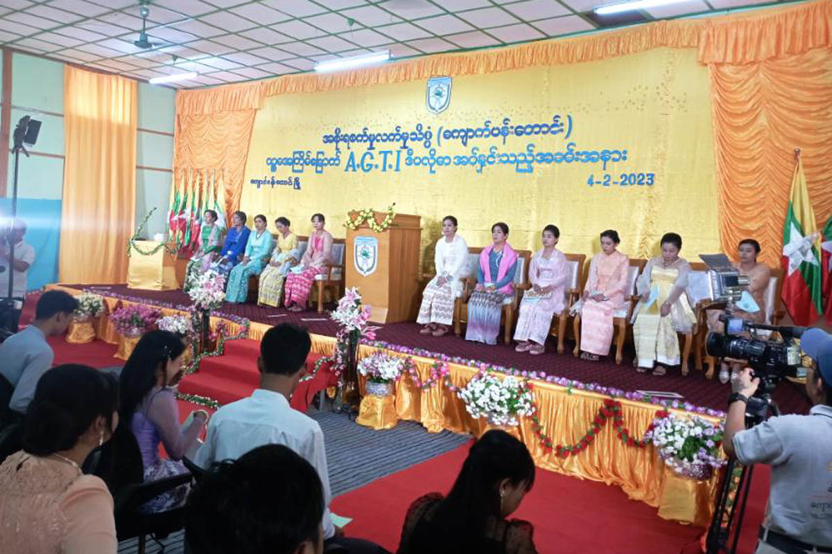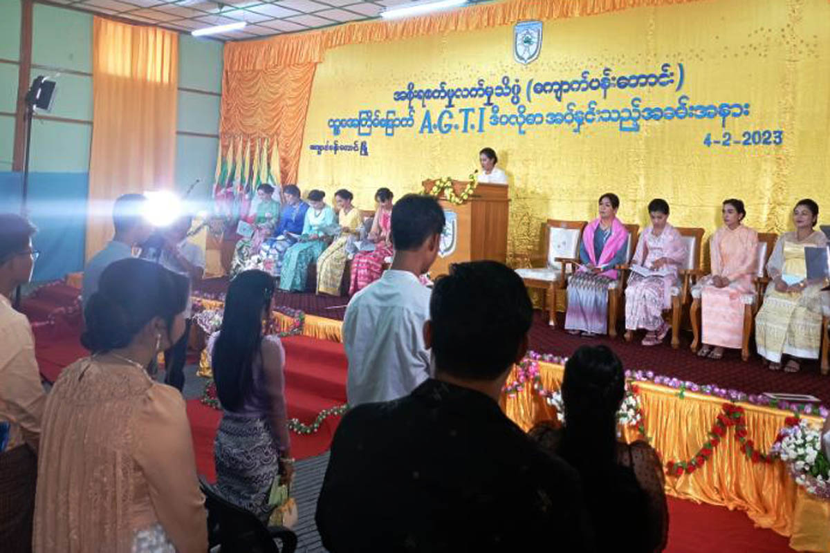 ယနေ့ပြုလုပ်သည့် အစိုးရစက်မှုလက်မှုသိပ္ပံ(ကျောက်ပန်းတောင်း)၏ ပဉ္စမအကြိမ်မြောက် A.G.D.I ဒီပလိုမာအပ်နှင်း ခြင်းအခမ်းအနားသို့ ကျောင်းအုပ်ဆရာမကြီး ဒေါက်တာသီတာဆွေနှင့် ဌာနမှူးများ၊ ကထိကများ၊ဆရာ/ဆရာမများ၊ ၂၀၁၉-၂၀၂၀ ပညာသင်နှစ် ဘာသာရက်အလိုက် ဒီပလိုမာရယူကြမည့် ကျောင်းသားကျောင်းသူများနှင့်မိဘများ စုစုပေါင်း (၁၀၀) ဦးခန့်တက် ရောက်ခဲ့ကြပြီး၊ ဒီပလိုမာအောင် လက်မှတ်များအား ကိုယ်တိုင်တက်ရောက်ရယူသူ(၃၁)ဦးနှင့် အဝေးရောက်ရယူသူ(၂၂)ဦး စုစုပေါင်း(၅၃)ဦးတို့ကို ပေးအပ်ခဲ့ကြောင်းသိရသည်။