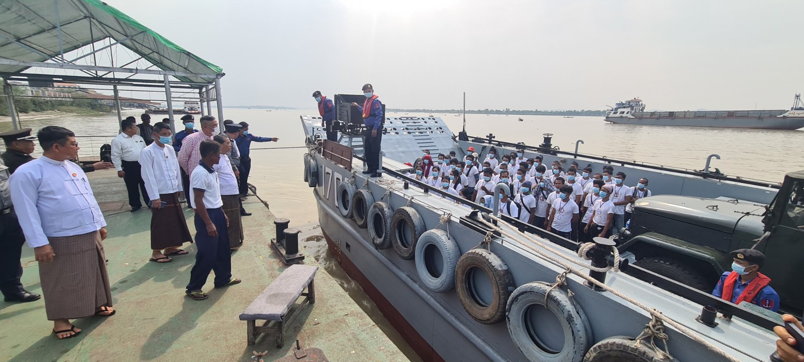 နိုင်ငံတော်စီမံအုပ်ချုပ်ရေးကောင်စီဥက္ကဋ္ဌ တပ်မတော်ကာကွယ်ရေးဦးစီးချုပ် ဗိုလ်ချုပ်မှူးကြီး မင်းအောင်လှိုင်၏ လမ်းညွှန်မှာကြားချက်အရထိုင်းနိုင်ငံတွင်ရောက်ရှိနေပြီး အကြောင်းအမျိုးမျိုးကြောင့် မြန်မာနိုင်ငံသို့ ပြန်လာရန် အခက်အခဲကြုံတွေ့ခဲ့ရသော နေရပ်ပြန် မြန်မာနိုင်ငံသားတို့အား ဘေးအန္တရာယ်ကင်းရှင်းစွာဖြင့် မိမိနေအိမ်များသို့ အမြန်ဆုံး ပို့ဆောင်ပေးရန်နှင့် အလှမ်းဝေးသည့်နေရပ်များသို့ တပ်မတော်(ရေ)မှ စစ်ရေယာဉ်ကြီးများဖြင့် ပို့ဆောင်ပေးရန် လုပ်ငန်း စဉ် များကို ဆောင်ရွက်လျက်ရှိရာ နေရပ်ပြန်မြန်မာနိုင်ငံသားများအနက် မွန်ပြည်နယ်မှ ကျား (၄၄) ဦး မ (၈) ဦး စုစုပေါင်း ၅၂ ဦးအား မော်လမြိုင်မြို့သို့ ပြောင်းရွှေ့ပို့ဆောင်ပေးခဲ့မှုအပေါ် မွန်ပြည်နယ် ဝန်ကြီးချုပ် ဦးအောင်ကြည်သိန်း၊ အရှေ့တောင်တိုင်း စစ်ဌာနချုပ်တိုင်းမှူး ဗိုလ်ချုပ်မြတ်သက်ဦး၊ ပြည်နယ်အဆင့်ဝန်ကြီးများ၊ တာဝန်ရှိသူများက ယမန်နေ့ မွန်းလွဲပိုင်းက မော်လမြိုင်မြို့၊ ကမ်းနားလမ်း၊ ဆိပ်ကမ်းသာတံတား၌ မွန်ပြည်နယ်အတွင်းရှိ နေရပ်ပြန် မြန်မာနိုင်ငံ သားများကို လှိုက်လဲနွေးထွေးစွာ ကြိုဆိုခဲ့ကြသည်။