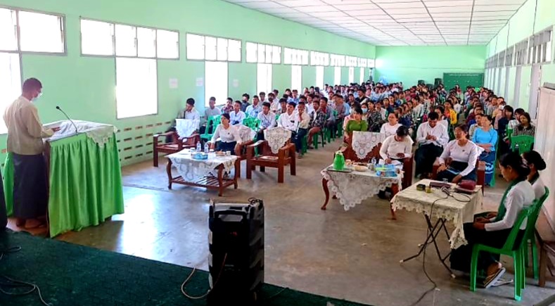 ၂၀၂၃ ခုနှစ်၊ တက္ကသိုလ်ဝင်စာမေးပွဲ မြို့နယ်အဆင့် အောင်ချက်မြင့်မားရေးဆွေးနွေးပွဲသို့ မြို့နယ် ပညာရေးမှူး ဒေါ်ခင်သက်နိုင်နှင့် ကျောင်းအုပ်ဆရာ၊ ဆရာမကြီး၊ လေ့လာသူ(၉)ဦး၊ ပြင်ပဖြေဆို ကြမည့် ကျောင်းသား၊ ကျောင်းသူ(၁၈၈)ဦးတို့ တက်ရောက်ခဲ့ကြကြောင်း သိရသည်။