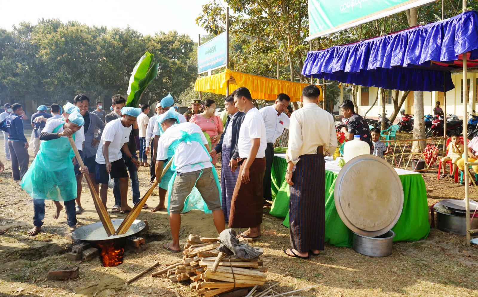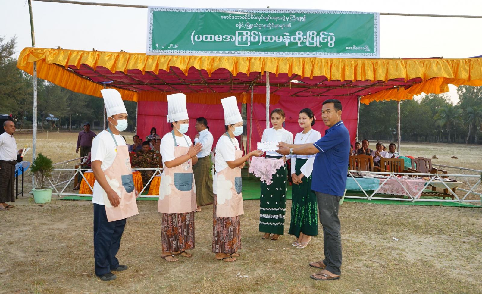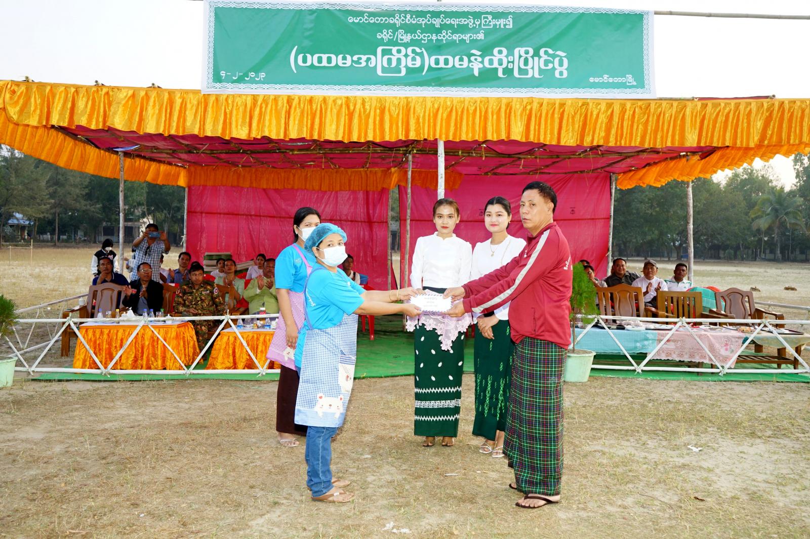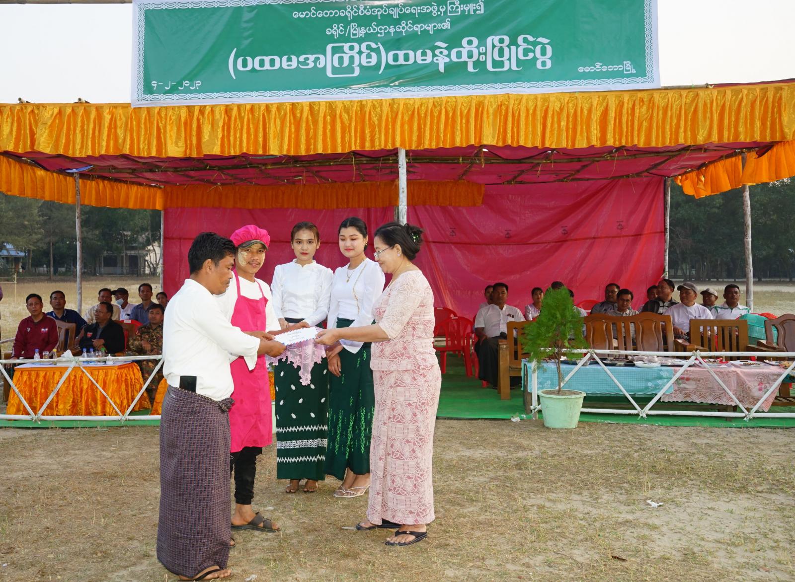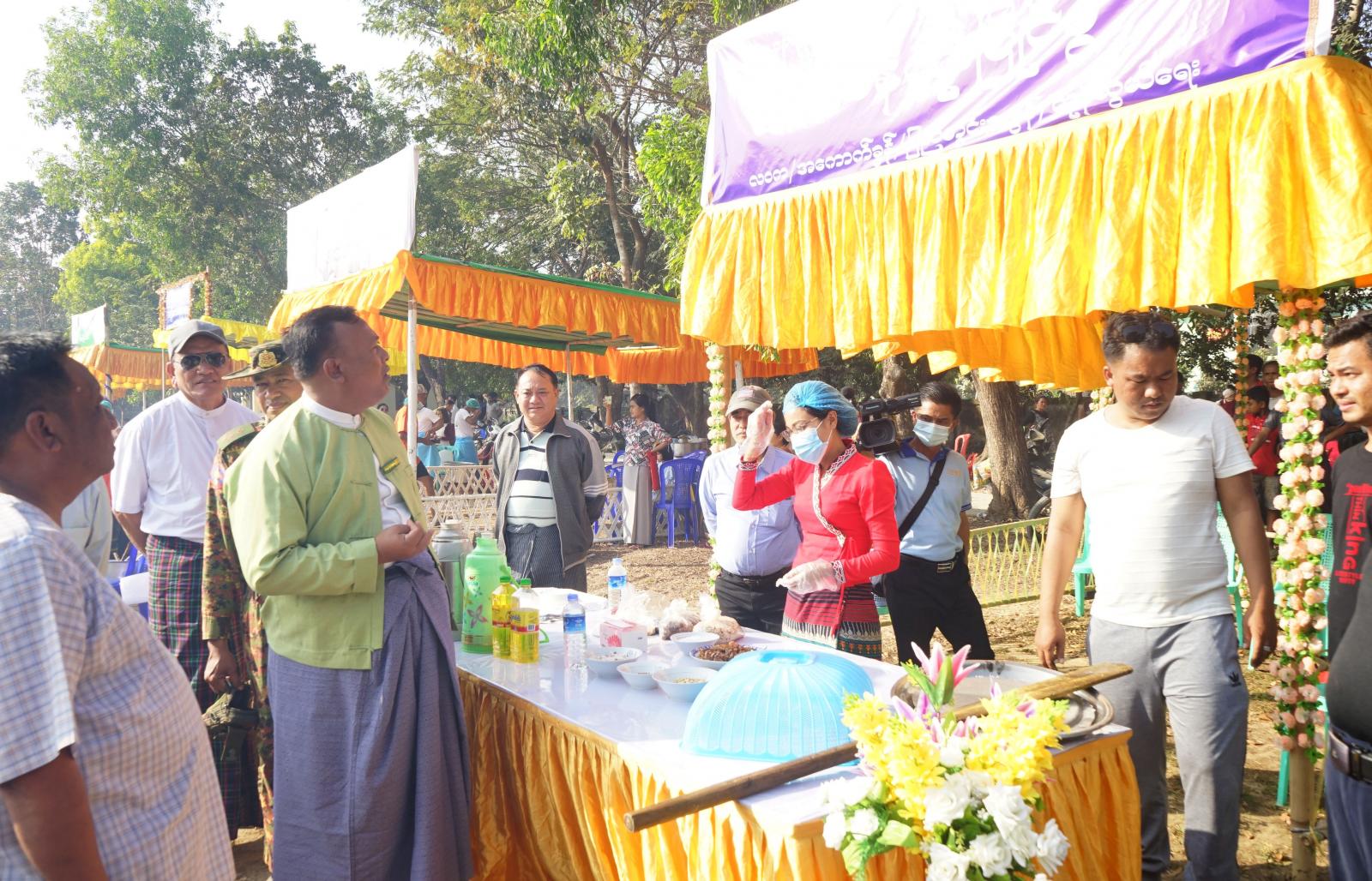 အခမ်းအနားတွင် ခရိုင်စီမံအုပ်ချုပ်ရေးအဖွဲ့ဥက္ကဋ္ဌ ဦးနေဦး၊ ခရိုင်စီမံအုပ်ချုပ်ရေးအဖွဲ့ဝင်(၁) ဒုတိယဗိုလ်မှူးကြီး ကျော်သူဝင်းနှင့် အဖွဲ့ဝင်များ၊ တာဝန်ရှိသူများက ခရိုင်/မြို့နယ် ဌာနများအလိုက် ပြိုင်ပွဲဝင်အသင်းများ၏ တပျော်တစ်ပါး ထမနဲထိုး ယှဉ်ပြိုင်နေမှုများအား လိုက်လံကြည့်ရှုအားပေးကြသည်။ အဆိုပါ ပထမအကြိမ်မြောက် မြန့်မာရိုးရာ ထမနဲထိုးပြိုင်ပွဲကို ခရိုင်/မြို့နယ်အဆင့် ဌာနဆိုင်ရာများမှ အသင်း(၁၀)သင်းမှ ပါဝင်ယှဉ်ပြိုင်ကြပြီး ပြိုင်ပွဲအပြီးတွင် ဆုရရှိသည့် အဖွဲ့များအား ပထမဆု ငွေကျပ် ၃ သိန်း၊ ဒုတိယဆု ငွေကျပ် ၂ သိန်း၊ တတိယဆု ငွေကျပ် ၁ သိန်း၊ နှစ်သိမ့်ဆု ငွေကျပ် ၅ သောင်း ကျပ်တို့အား ဆုများအသီးသီး ပေးအပ်ချီးမြှင့်ပေးခဲ့ကြကြောင်း သိရသည်။