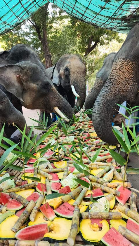 မြန်မာနိုင်ငံတိုင်းဒေသကြီးနှင့်ပြည်နယ်များတွင် ဆင်စခန်း(၂၂)ခုထိဖွင့်လှစ်ထားရှိထားပြီး ဆင်စာဘူဖေးကျွေးမွေးလှူဒါန်းလိုပါက ဆင်စခန်းအမည်များနှင့် Page များတွင် ဆက်သွယ်လှူဒါန်းနိုင်ကြောင်း ၊ဆင်စာအဖြစ် ကြံ၊ နေပီယာမြက်၊ငှက်ပျောသီး၊ ဖရုံသီး၊ ဖရဲသီး၊ သခွားသီး၊သရက်သီး၊ အုန်းသီး၊ပြောင်းဖူးများကိုအဓိကကျွေးကြကာ ရာသီပေါ်သီနှံများအားကျွေးမွေးကြပြီး ဆင်စာဘူဖေးတစ်ခါကျွေးလျှင် သုံးသောင်းကျပ်မှငါးသောင်းကျပ်ထိ လှူဒါန်းကြကာတနေ့စာ ဆင်ခုနှစ်ကောင်အတွက်တစ်သိန်းကျပ် လှူဒါန်းနိုင်ကြောင်းသိရသည်။