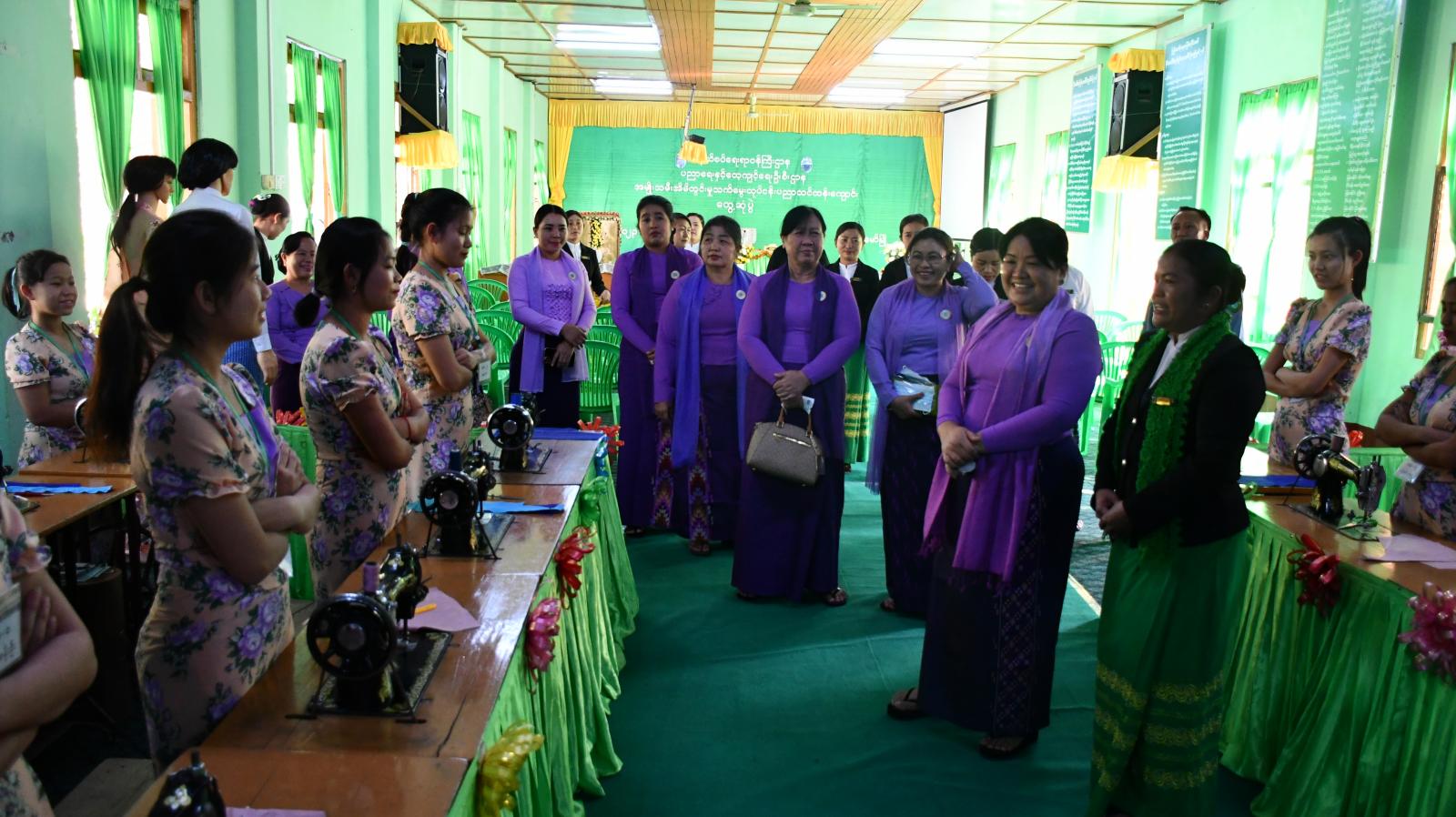 ထို့သို့ဆောင်ရွက်ရာတွင် ပြည်နယ်မိခင်နှင့်ကလေးစောင့်ရှောက်ရေးအသင်း နာယက၊ ပြည်နယ်ဝန်ကြီးချုပ်၏ဇနီး ဒေါ်နန်ဆိုင်း၊ နာယကအဖွဲ့ဝင်များဖြစ်ကြသည့် ဒေါ်နန်စိန်အေး၊ ဒေါ်ဒေါင်နန်း၊ ဒေါ်သွဲ့လေးအောင်တို့သည် ခရိုင်မိခင်နှင့်ကလေးစောင့်ရှောက်ရေးအသင်းဥက္ကဋ္ဌ၊ ခရိုင်/မြို့နယ် အဖွဲ့ဝင်များနှင့်အတူ ဗန်းမော်မြို့နယ်စပ်ရေးရာဝန်ကြီးဌာန၊ပညာရေးနှင့်လေ့ကျင့်ရေးဦးစီးဌာန၊အမျိုးသမီးအိမ်တွင်းမှု သက်မွေးပညာသင်တန်းကျောင်း၌ အခြေခံစက်ချုပ်ပညာ သင်တန်းတက် ရောက်နေသောသင်တန်းသူများအား ရင်းရင်းနှီးနှီးတွေ့ဆုံအားပေးစကားပြောကြားပြီး သင်တန်းသူများ၏ စားရိပ်သာဆောင်၊ အိပ်ဆောင်များကို လှည့်လည်ကြည့်ရှုစစ်ဆေးကာ ထောက်ပံ့ငွေများကိုထောက်ပံ့ပေးအပ်ခဲ့သည်။