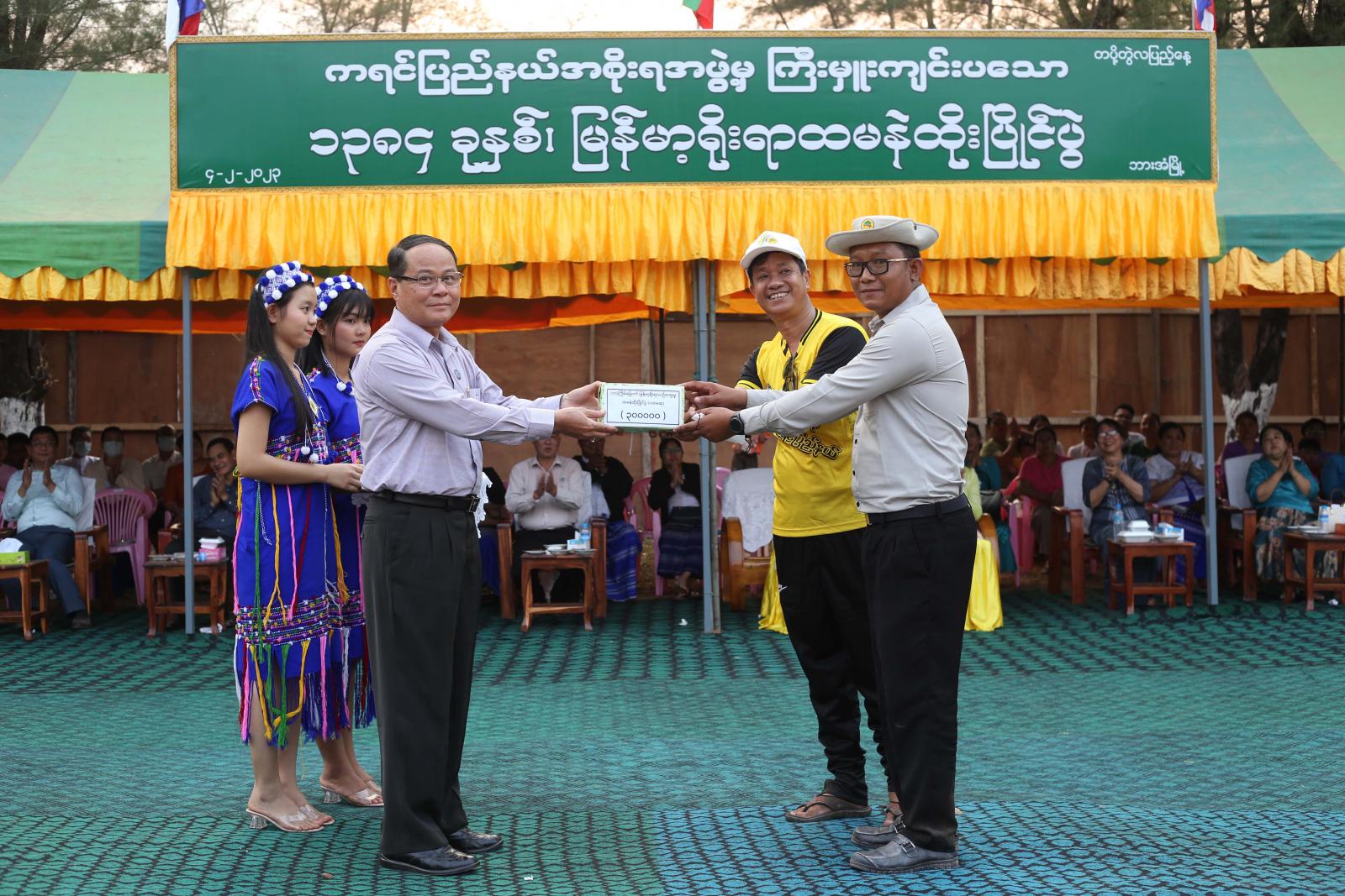 ပြိုင်ပွဲအပြီးတွင် ဆုချီးမြှင့်သည့်အခမ်းအနားကို ဆက်လက်ကျင်းပရာ အထူးဆုရရှိသော ပြိုင်ပွဲဝင်ထမနဲထိုး အသင်း ၄၆ သင်းအား ပြည်နယ်အဆင့်ဌာနဆိုင်ရာများ၊ ပြည်နယ်အစိုးရအဖွဲ့ဝင်များနှင့် ၎င်းတို့၏ဇနီးများ ဂုဏ်ပြုဆု များပေးအပ်ချီးမြှင့်ခဲ့ကြပြီး ပြည်နယ်လုံခြုံရေးနှင့်နယ်စပ်ရေးရာဝန်ကြီး ဗိုလ်မှူးကြီးမျိုးမင်းနောင်နှင့် ဇနီးတို့က နှစ်သိမ့်ဆု ၁ မှ ၄ အထိရရှိသည့် အသင်းများကိုလည်းကောင်း၊ ပြည်နယ်တရားလွှတ်တော်တရားသူကြီးချုပ်က တတိယဆုရရှိသည့်အသင်းအား လည်းကောင်း၊ ပြည်နယ်ဝန်ကြီးချုပ်၏ ဇနီး ဒေါ်နန်းဘေဘီမြင့်က ဒုတိယဆုရရှိသော အသင်းအားလည်းကောင်း ဂုဏ်ပြုဆုများအသီးသီး ပေးအပ်ချီးမြှင့်ခဲ့ကြပြီး ပြည်နယ်ဝန်ကြီးချုပ် ဦးစောမြင့်ဦး က ပထမဆုရရှိသော ပြည်နယ်လမ်းဦးစီးဌာန ထမနဲထိုးအသင်းအား ဂုဏ်ပြုဆုများ ပေးအပ်ချီးမြှင့်ခဲ့ကြောင်း သိရသည်။