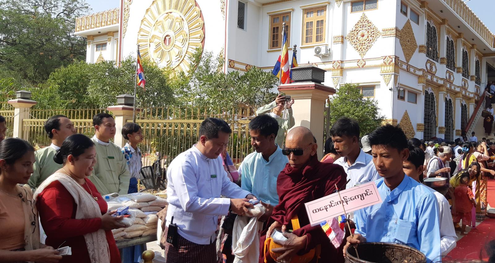 အဆိုပါ သမိုင်းဝင်မြတ်ညီနောင်စေတီတော်မြတ်ကြီး၏ သံဃာ့ဒါန ဆွမ်းဆန်စိမ်းလောင်လှူပွဲကြီးသို့ မြို့နယ်အတွင်းရှိ ကျောင်းတိုက်များမှ ဆရာတော် သံဃာတော်ရှင်သူမြတ်များကကြွရောက်ခဲ့ကာ မြို့နယ်စီမံအုပ်ချုပ်ရေးအဖွဲ့ခေတ္တဥက္ကဋ္ဌ ဦးရဲမြင့်သိန်းနှင့် အဖွဲ့ဝင်များ၊ ဌာနဆိုင်ရာအကြီးအကဲများနှင့် ဝန်ထမ်းများ၊ ဒေသခံပြည်သူများမှ ဆွမ်းဆန်စိမ်းနှင့် လှူဖွယ်ပစ္စည်းအစုစုကို လောင်းလှူခဲ့ကြကြောင်း သိရသည်။
