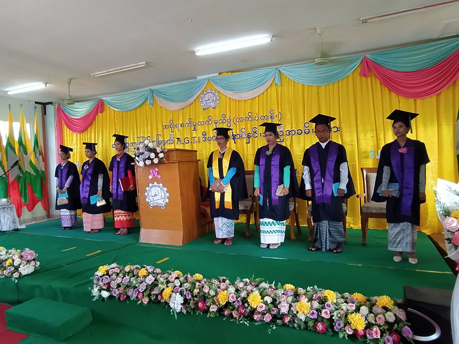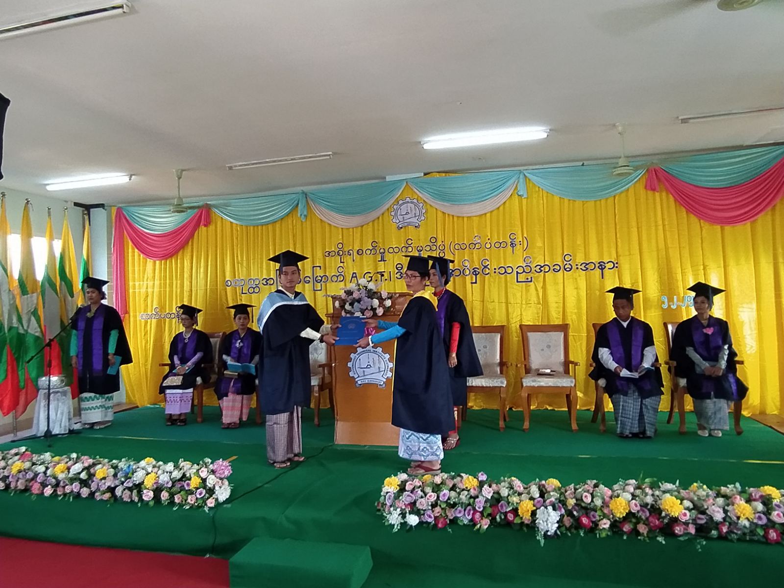 ပညာရေးဝန်ကြီးဌာန၊ အဆင့်မြင့်ပညာဦးစီးဌာန၊ ပဲခူးတိုင်းဒေသကြီး၊ လက်ပံတန်းမြို့နယ် အစိုးရစက်မှုလက်မှုသိပ္ပံ၏ စတုတ္ထကြိမ်မြောက် A. G. T I ဒီပလိုမာ အပ်နှင်းသည့် အခမ်းအနားကို ယမန်နေ့ နံနက် ၉ နာရီကကျင်းပခဲ့ရာ တွဲဖက်ပါမောက္ခနှင့် စီမံခန့်ခွဲရေးအဖွဲ့ဝင်များ၊ ပညာရေးအဖွဲ့ဝင်များ၊ ကျောင်းသား၊ ကျောင်းသူများနှင့် မိဘ/ ဆွေမျိုးများ တက်ရောက်ကြသည်။