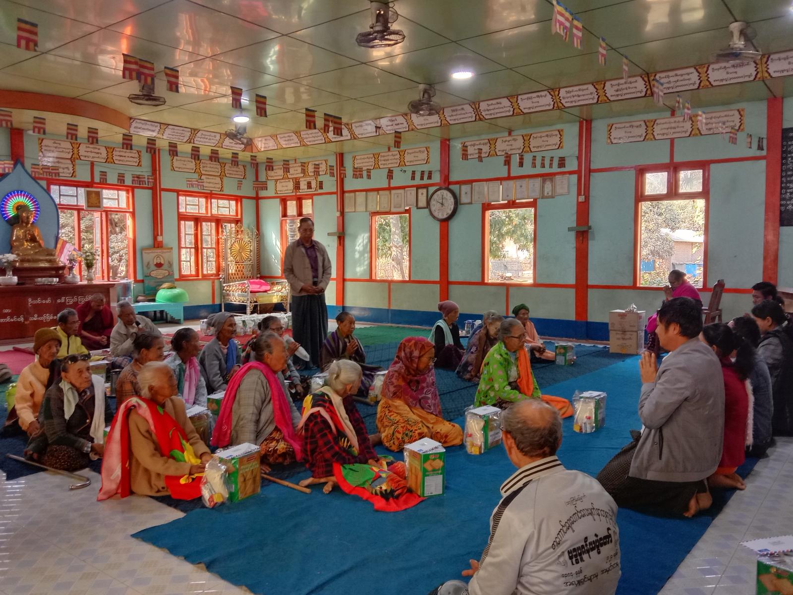 ရှေးဉီးစွာ ချမ်းသာကြီးပရိယတ္တိစာသင်တိုက် ဆရာတော်ထံမှ ငါးပါးသီလခံယူတည်ဆောက်ကာ လှူဒါန်းမှုအစုစုအတွက် ရေစက်သွန်းချ အမျှဝေခဲ့ကြသည်။ ထို့နောက် အလှူရှင်မိသားစုမှ တကောင်းမြို့ပေါ်ရပ်ကွက်များနှင့် ကျေးရွာအုပ်စုများမှ အသက် (၈၅)နှစ်နှင့်အထက်လူမှုရေး ပင်စင်ရရှိသည့် အဘိုး၊ အဘွား (၁၅၉)ဉီးအား (၁)ဉီးလျှင် ဝတ္ထုငွေ (၁)သိန်းကျပ်၊ ဆေး (၃)မျိုး၊ မုန့်၊ သကြား စုစုပေါင်း ကာလ တန်ဖိုး (၁၂၀၂၅၀)ကျပ်အားပူဇော်ကန်တော့ခဲ့ပြီး ကန်တော့ခံ မတက်ရောက်နိုင်သည့်အဘိုး၊အဘွားများအား အိမ်တိုင်ရာရောက် သွား ရောက် ကန်တော့ခဲ့ကြသည်။