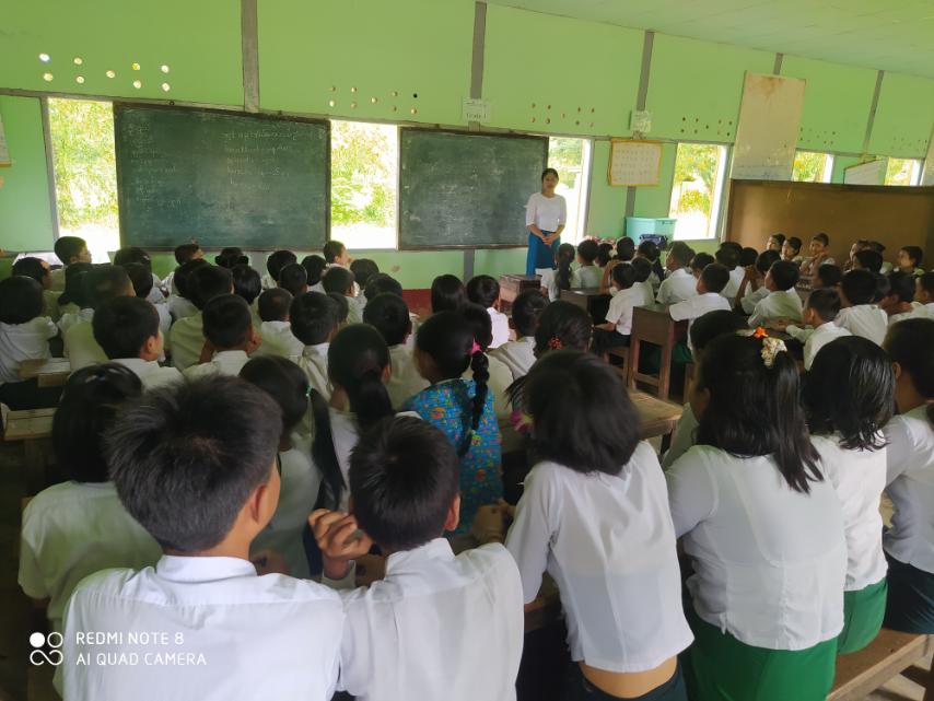 ရှေးဦးစွာ ကျောင်းအုပ်ဆရာမကြီး ဒေါ်မြင့်မြင့်အေးက အဖွင့်အမှာစကားပြောကြားပြီး၊ ပြန်ကြားရေးနှင့်ပြည်သူ့ဆက်ဆံရေးဦးစီးဌာန၊ မြို့နယ်ဦးစီးမှူး ဒေါ်သန်းသန်းဝင်းက မူးယစ်ဆေးဝါးကင်းစင်သည့် အနာဂတ်မျိုးဆက်သစ် ကျောင်းသား/ ကျောင်းသူများဖြစ်စေရန်နှင့် စာသင်ကျောင်းအနီးအနားတွင် ဆေးလိပ်အပါအဝင် မူးယစ်ဆေးဝါးနှင့် စိတ်ကိုပြောင်းလဲစေသော ဆေးဝါးများအန္တရာယ်မှ တားဆီးကာကွယ်နိုင်စေရန်အတွက် ရည်ရွယ်၍ ဟောပြောပွဲကျင်းပရခြင်းဖြစ်ကြောင်းနှင့် မူးယစ်ဆေးဝါး၏အန္တရာယ်များ၊ မူးယစ်ဆေးဆိုသည်မှာ၊ မူးယစ်ဆေးဝါးအမျိုးအစားများ၊ မူးယစ်ဆေးသုံးစွဲမိသောအကြောင်းရင်းများ၊ မူးယစ်ဆေးဝါးသုံးစွဲခြင်း၏ ဆိုးကျိုးများနှင့် မူးယစ်ဆေးဝါးပပျောက်ရေးကို မဟာဗျူဟာ(၂)ရပ်၊ နည်းဗျူဟာ (၃)ရပ်တို့ဖြင့် ချမှတ်ဆောင်ရွက်လျက်ရှိကြောင်းတို့ကို ရှင်းလင်းဟောပြောခဲ့သည်။