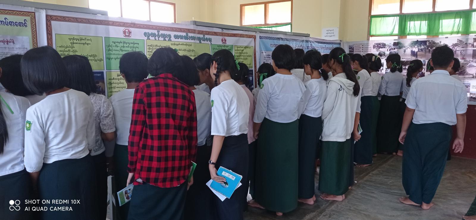 ထို့နောက် ကျောင်းသား/ ကျောင်းသူများ အသိပညာဗဟုသုတ တိုးပွားစေရေးအတွက် မူးယစ်ဆေးဝါးအန္တရာယ်၊ လူကုန်ကူးမှုတိုက်ဖျက်ရေး အသိပညာပေး နံရံကပ်စာစောင်များ၊ ကလေးအလုပ်သမားပပျောက်ရေးအသိပညာပေးနှင့် ယာဉ်အန္တရာယ်၊ လမ်းအန္တရာယ်အသိပညာပေး နံရံကပ်စာစောင်များကို ခင်းကျင်းပြသရာ ကျောင်းသား/ ကျောင်းသူများ စိတ်ပါဝင်စားစွာ ကြည့်ရှုလေ့လာကြကြောင်းနှင့် မုဒုံမြို့နယ်ပြန်/ ဆက်ဝန်ထမ်းများမှ (၇၆)နှစ်မြောက် ပြည်ထောင်စုနေ့အထိမ်းအမှတ် သတင်းစကားလက်ကမ်းစာစောင်များအား အခမဲ့ဖြန့်ဝေကြောင်း သိရသည်။