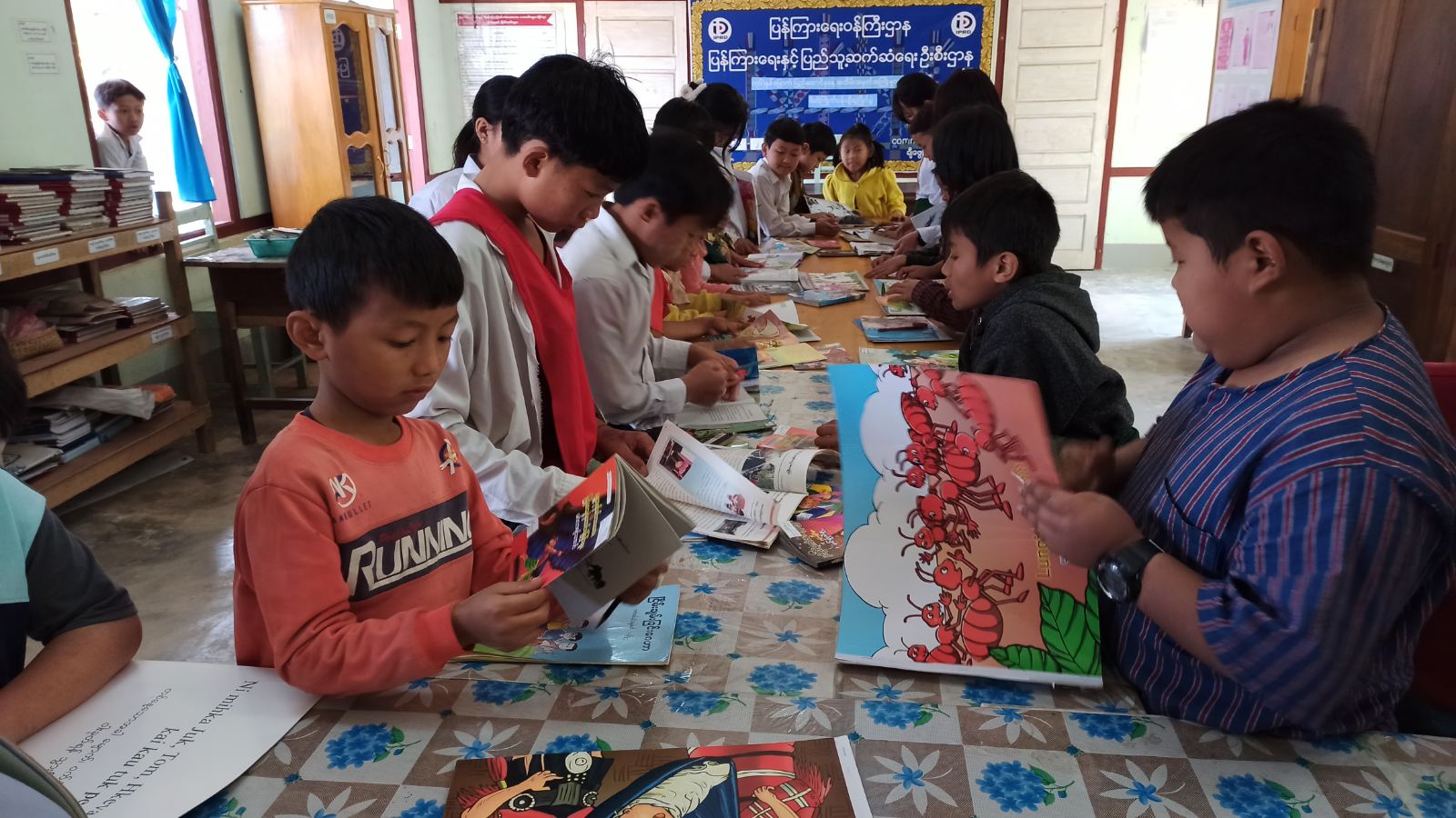 ယင်းနောက် ကျောင်းသား၊ ကျောင်းသူများ ကျောင်းစာအပြင် ပြင်ပဗဟုသုတများ မျှဝေနိုင်ရန်၊ စာပေလေ့လာဖတ်ရှု့ခြင်းမှ အတွေးအခေါ်များ၊ ရည်မှန်းချက်များ မြင့်မားလာစေရန် စာအုပ်စာပေများ ချစ်ခင်မြတ်နိုးတတ်လာစေရန် သုတ/ရသစာအုပ်စာစောင်များကို ခင်းကျင်း ပြသထားရာ ကျောင်းသား၊ ကျောင်းသူများ စိတ်ပါဝင်စားစွာ လေ့လာဖတ်ရှု့ခဲ့ကြောင်း သိရှိရသည်။