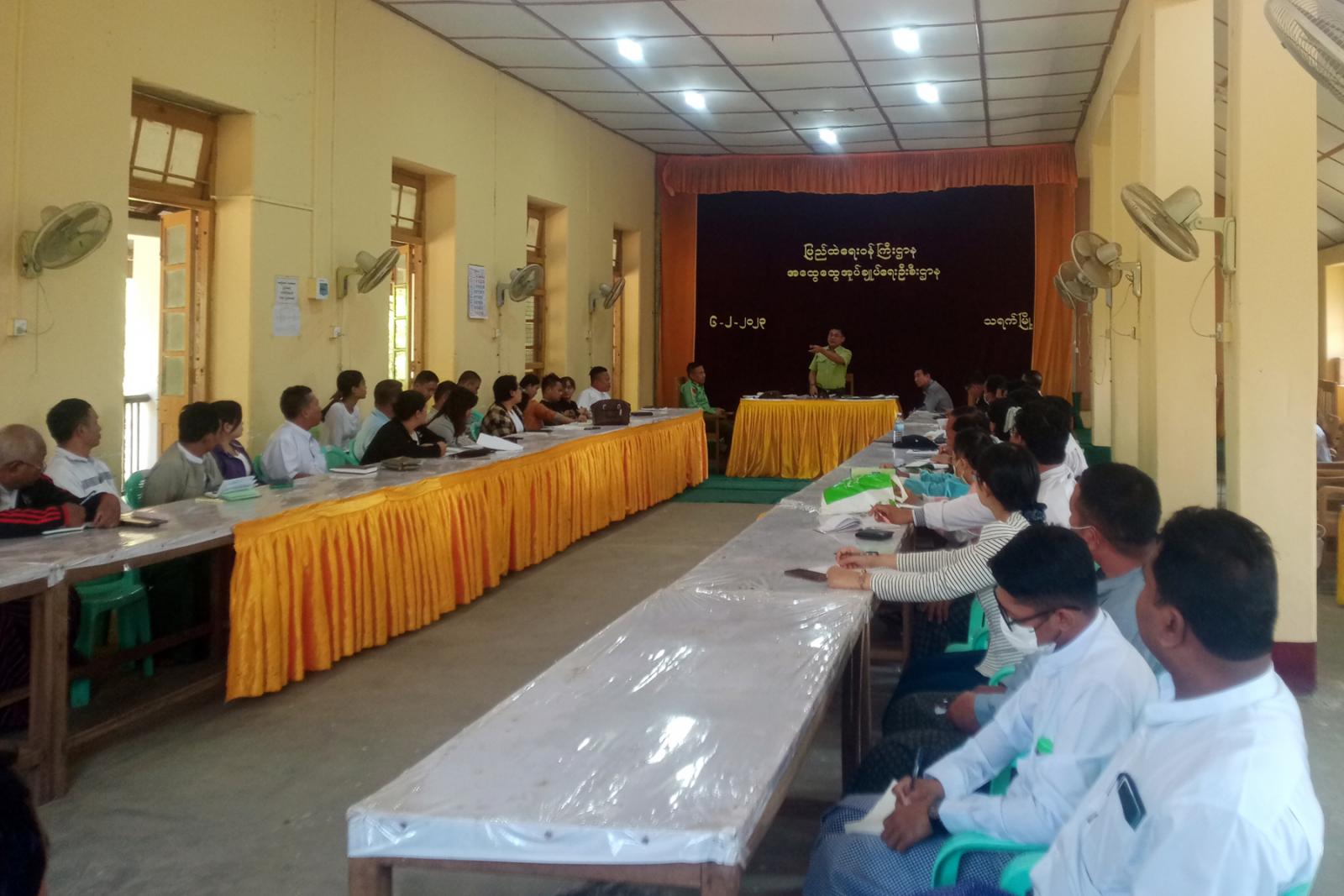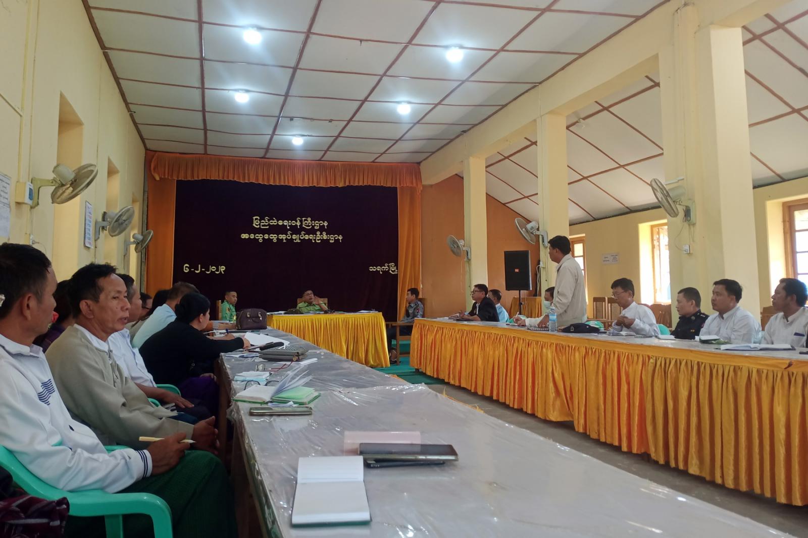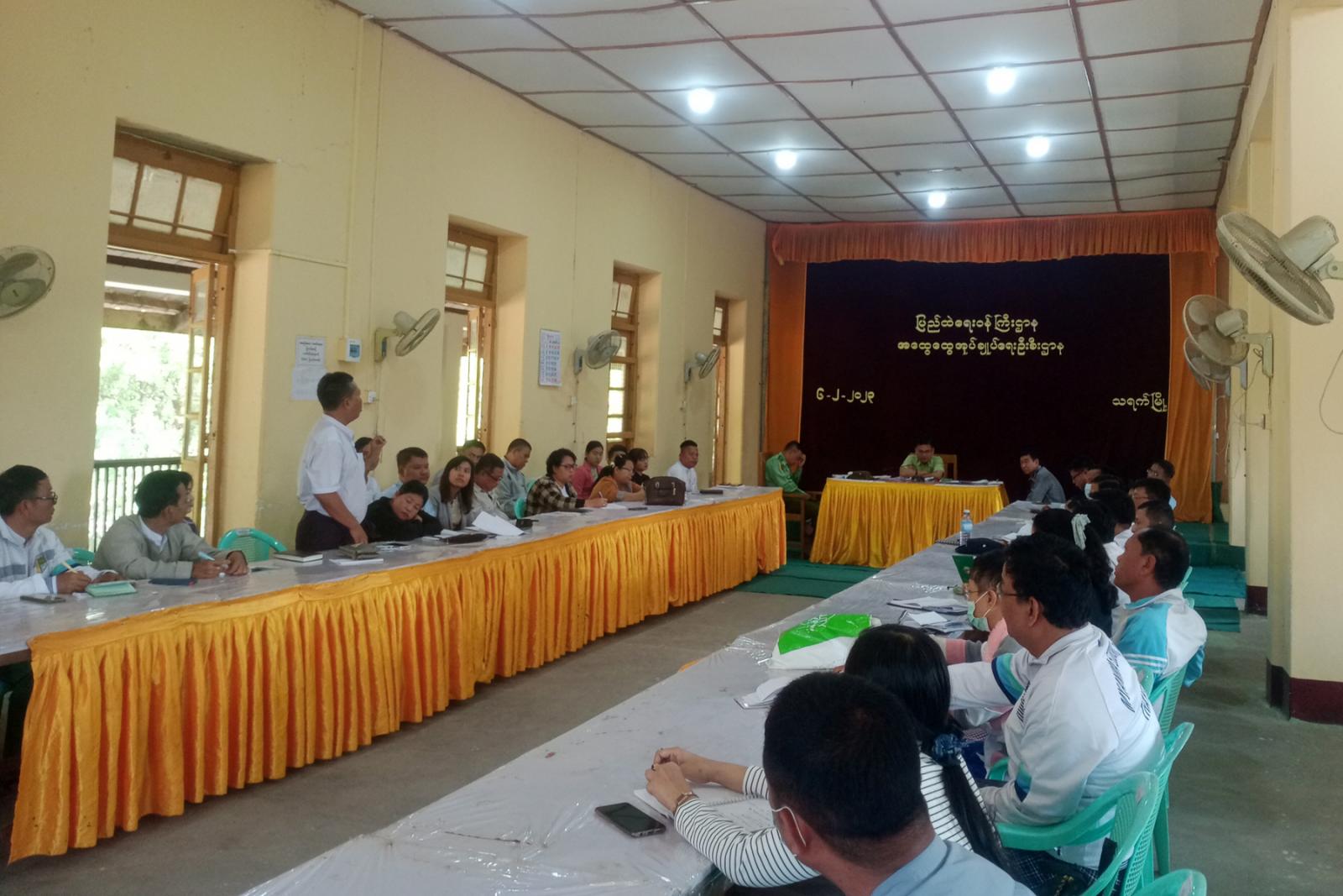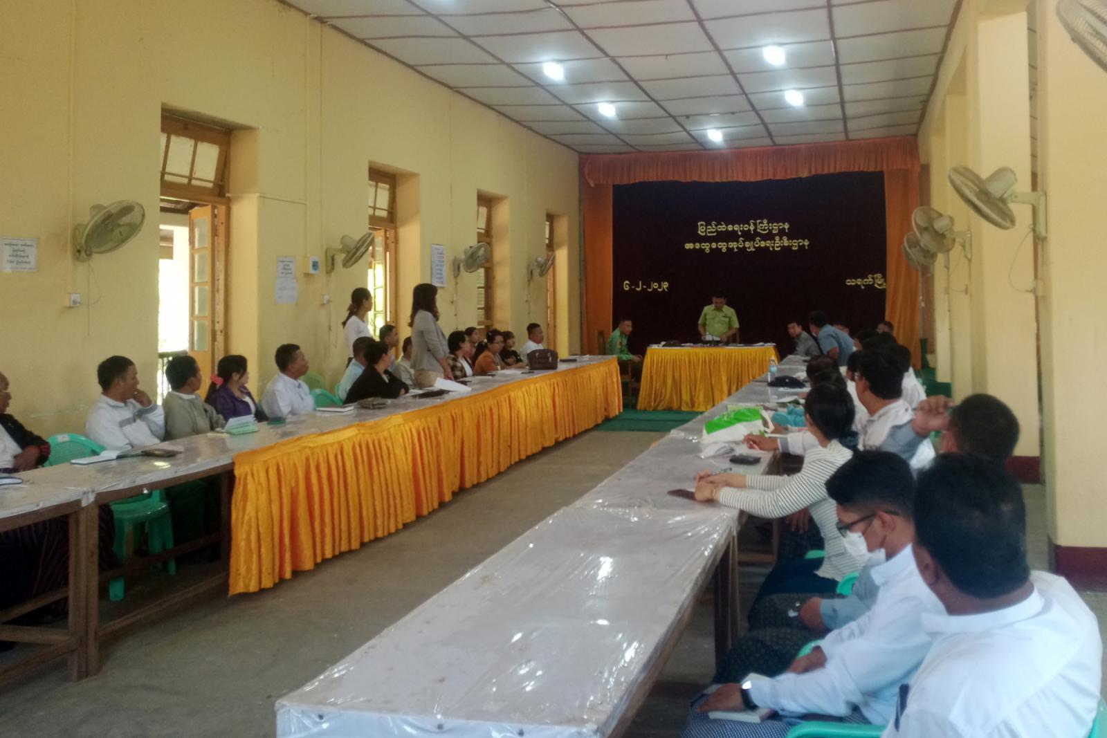 ဆက်လက်၍ တက်ရောက်လာကြသော ဌာနဆိုင်ရာများက မိမိတို့ဌာန၏ လုပ်ငန်းဆောင်ရွက်မှု၊ သန့်ရှင်းရေးနှင့် လုံခြုံရေးဆောင်ရွက်ထားရှိမှုအခြေအနေများကိုတင်ပြခဲ့ကြပြီး မြို့နယ် စီမံအုပ်ချုပ်ရေးအဖွဲ့ ဥက္ကဋ္ဌက လိုအပ်သည်များဖြည့်စွက်ရှင်းလင်းပြီး ပေါင်းစပ်ညှိနှိုင်းဆောင်ရွက် ပေးခဲ့ကြောင်း သိရသည်။