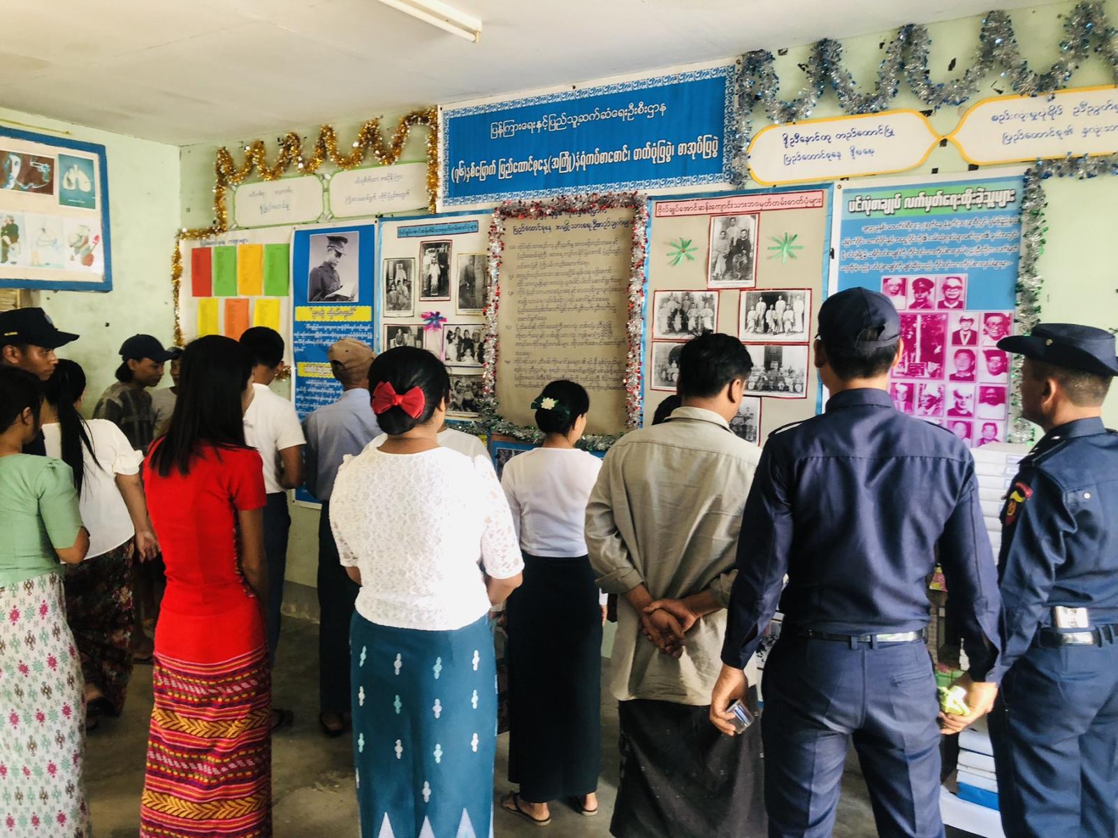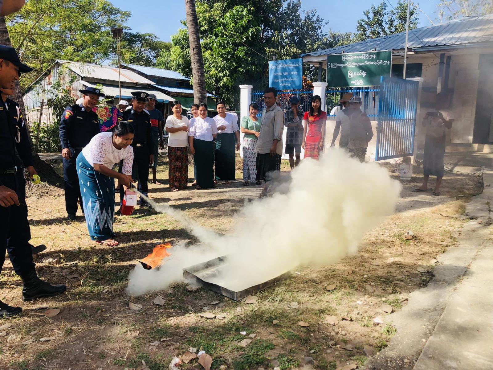 ဆက်လက်၍ မြို့နယ်မီးသတ်ဦးမှူး ဦးနောင်နောင်နှင့် တပ်ဖွဲ့ဝင်များမှ မီးသတ်ဆေးဘူး အသုံးပြုပုံနှင့် ဂတ်စ်မီးလောင်မှု၊ ဆီမီးလောင်မှုအား လက်တွေ့ငြိမ်းသတ် သရုပ်ပြဇာတ်တိုက် လေ့ကျင့်ခဲ့ကြပြီး၊ မြို့နယ်ပြန်ကြားရေးနှင့်ပြည်သူ့ဆက်ဆံရေးဦးစီးဌာနမှ (၇၆)နှစ်မြောက် ပြည်ထောင်စုနေ့(အကြို) အသိပညာပေး နံရံကပ်စာစောင်များ ပြသခဲ့ကြောင်း သိရသည်။