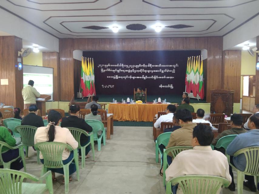 ပဲခူးတိုင်းဒေသကြီး၊ ပြည်ခရိုင်၊ ပန်းတောင်းမြို့နယ် ၂၀၂၁ ခုနှစ်၊ ဖေဖော်ဝါရီလမှ ၂၀၂၃ ဇန်နဝါရီလအထိ ကာလအတွင်း ဒေသဖွံ့ဖြိုးရေးလုပ်ငန်းများအား ရှင်းလင်းခြင်းအစည်းအဝေးကို ယနေ့နံက်ပိုင်းက မြို့နယ်အထွေထွေအုပ်ချုပ်ရေးအစည်းဝေးခန်းမ၌ ကျင်းပပြုလုပ်ခဲ့သည်။