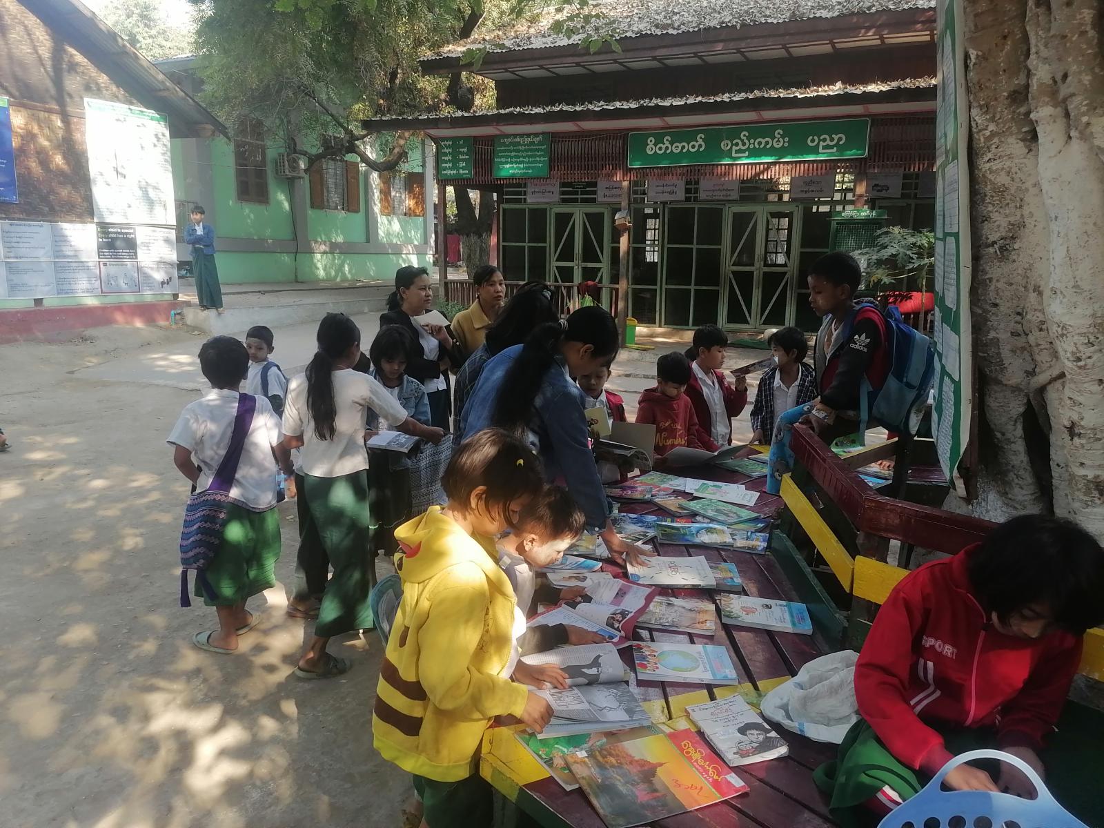 အရပူရမြို့နယ် ပြန်ကြားရေးနှင့်ပြည်သူ့ဆက်ဆံရေးဦးစီးဌာန၊ ဦးစီးအရာရှိ ဒေါ်တင်တင်လှက နံရံကပ်စာစောင်ပြပွဲပြုလုပ်ရခြင်းနှင့် စာအုပ်စာစောင်ပြပွဲပြုလုပ်ရခြင်း ရည်ရွယ်ချက်များကို ရှင်းလင်းပြောကြားပြီး ကလေး၏အသက်အရွယ်အပိုင်းအခြား၊ လက်ရှိကလေးငယ်များအလုပ်လုပ်နေရပုံ၊ ကလေးငယ်အခွင့်အရေးဆုံးရှုံးနေရမှု စသည့်အချက်များပါဝင်သည့် နံရံကပ်များကိုပြသပေးခဲ့ပြီး ကျောင်းသား၊ ကျောင်းသူများ စာပေဖတ်ရှုလေ့လာနိုင်စေရန်၊ စာဖတ်ရှိန်မြှင့်တင်နိုင်စေရန်ရည်ရွယ်ပြီး စာအုပ်စာစောင်များ ခင်းကျင်းပြသပေးခဲ့ကြောင်း သိရသည်။ အဆိုပါ နံရံကပ်စာစောင်နှင့် စာအုပ်စာစောင်ပြပွဲကို ကျောင်းသား၊ ကျောင်းသူလေးများကကြည့်ရှုပြီး သိရှိလိုသည်များကိုမေးမြန်းကြရာ ဦးစီးအရာရှိက ပြန်လည်ဖြေကြားပေးခဲ့ကြောင်း သိရသည်။