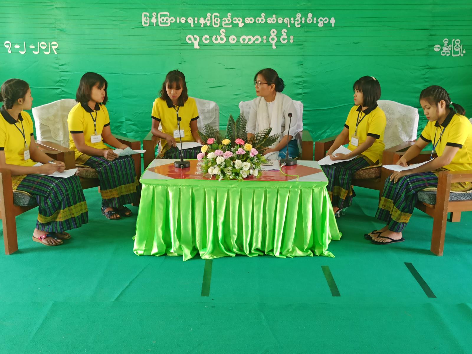 ရှေးဦးစွာ ပြန်ကြားရေးနှင့်ပြည်သူ့ဆက်ဆံရေးဦးစီးဌာန၊ ခရိုင်ဦးစီးမှူး ဒေါ်စိမ်းလဲ့လဲ့က လူငယ်စကားဝိုင်းပြုလုပ်ရခြင်း၏ ရည်ရွယ်ချက်အား ရှင်းလင်းပြောကြားပြီး သင်တန်းသူများ ဖြစ်ကြသည့် မရွှေစင်အောင်က လူငယ်နှင့်စာရိတ္တခေါင်းစဉ်ဖြင့်လည်းကောင်း၊ မသိမ့်သိမ့်ဦးက လူငယ်နှင့်အခွင့်အလမ်းခေါင်းစဉ်ဖြင့်လည်းကောင်း၊ မမေသူအောင်က လူငယ်နှင့်ဘဝရည်မှန်းချက် ပန်းတိုင်ခေါင်းစဉ်ဖြင့်လည်းကောင်း၊ မသီတာခိုင်က လူငယ်နှင့်အားကစား ခေါင်းစဉ်ဖြင့်လည်းကောင်း၊ မထက်မြတ်စန်းက လူငယ်နှင့်ကျန်းမာရေးခေါင်းစဉ်ဖြင့် လည်းကောင်း အသီးသီးဆွေးနွေးခဲ့ကြပြီး ကျောင်းအုပ်ဆရာမကြီး ဒေါ်နှင်းနုငယ်က ကျေးဇူးတင်စကား ပြန်လည်ပြောကြားခဲ့သည်။ ထို့နောက် ပြန်ကြားရေးနှင့်ပြည်သူ့ဆက်ဆံရေးဦးစီးဌာနမှ ခင်းကျင်းပြသထားသည့် စာအုပ် စာစောင်များအား သင်တန်းသူလေးများက စိတ်ဝင်တစား ကြည့်ရှုခဲ့ကြကြောင်း သိရသည်။