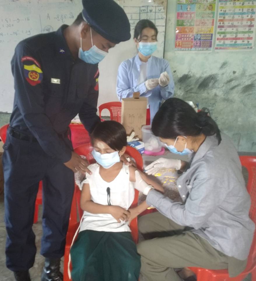 ရခိုင်ပြည်နယ်၊ စစ်တွေခရိုင်၊ ပေါက်တောမြို့နယ်အတွင်းရှိ အခြေခံပညာကျောင်းများတွင် ကိုဗစ်-၁၉ရောဂါကူးစက်ပြန့်ပွားမှု မဖြစ်ပေါ်စေရေးနှင့် ကျောင်းသား၊ ကျောင်းသူများ ကျန်းမာပျော်ရွှင်စွာ ပညာသင်ယူနိုင်ရေးအတွက် ကိုဗစ်-၁၉ရောဂါကာကွယ်ဆေး အကြိမ်ပြည့် ထိုးနှံပြီးစီးမှုကာလ (၅)လပြည့်ပြီးသော အသက် (၅) နှစ်မှ (၁၂)နှစ်အတွင်းရှိ ကျောင်းသူ၊ကျောင်းသားများအား (Myancopharm) ကိုဗစ်-၁၉ ရောဂါကာကွယ်ဆေး (Booster dose) ထိုးနှံပေးခြင်းကို ယမန်နေ့ နံနက်ပိုင်းက ပေါက်တောမြို့နယ်အတွင်းရှိ အခြေခံပညာကျောင်းများတွင် ဆက်လက် ထိုးနှံပေးခဲ့ကြောင်းသိရသည်။
