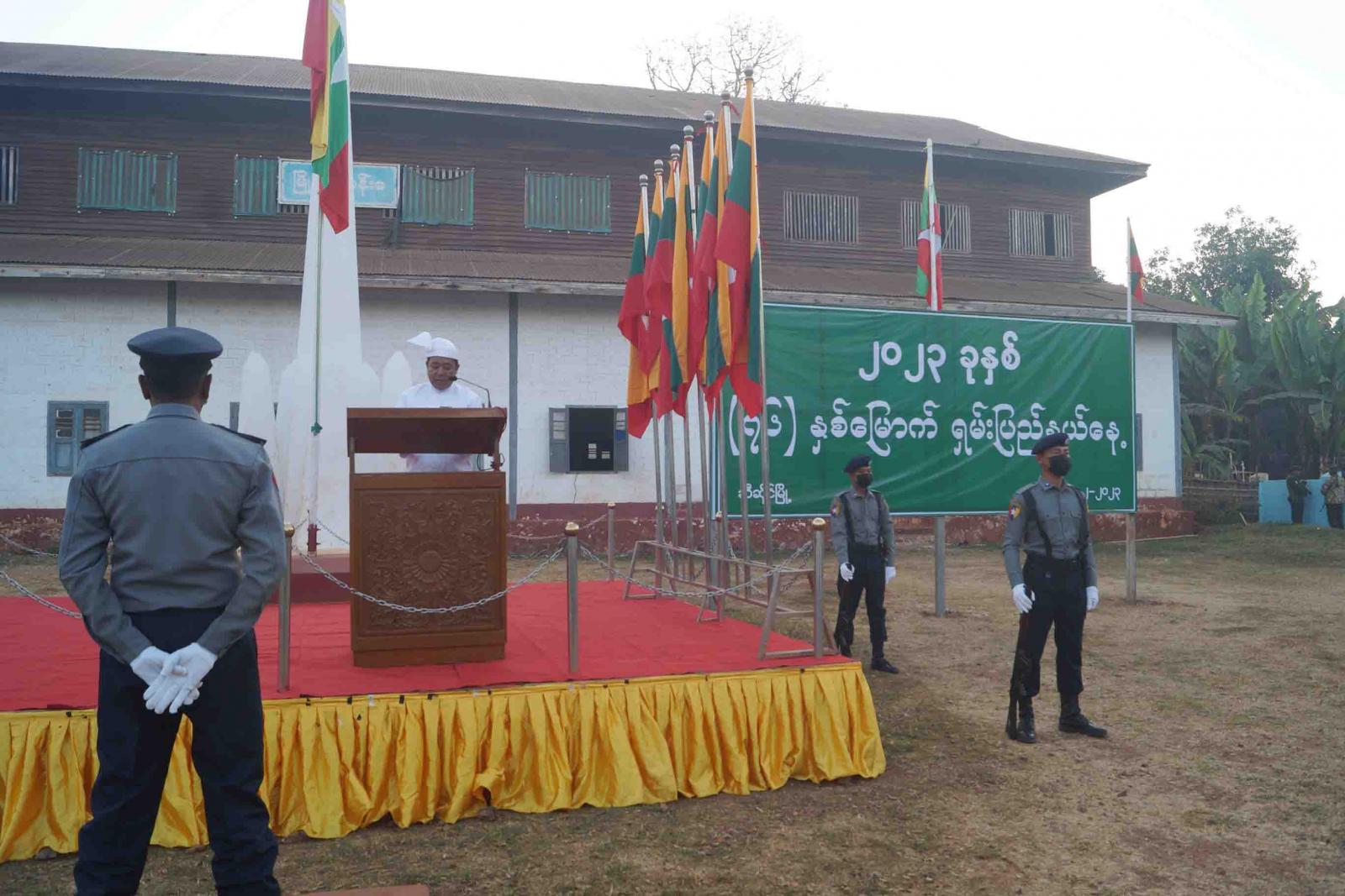 ရှေးဦးစွာ ပြည်ထောင်စုသမ္မတမြန်မာနိုင်ငံတော်အလံအား အလေးပြုခြင်းနှင့် ပြည်ထောင်စုသမ္မတ မြန်မာနိုင်ငံတော် နိုင်ငံတော်စီမံအုပ်ချုပ်ရေးကောင်စီဥက္ကဋ္ဌ နိုင်ငံတော်ဝန်ကြီးချုပ် ဗိုလ်ချုပ်မှူးကြီး သတိုးမဟာသရေစည်သူ သတိုးသီရိသုဓမ္မ မင်းအောင်လှိုင်ထံမှ (၇၆)နှစ်မြောက် ရှမ်းပြည်နယ်နေ့ အခမ်းအနားသို့ ပေးပို့သော သဝဏ်လွှာကို မြို့နယ်စီမံအုပ်ချုပ်ရေးအဖွဲ့ဥက္ကဋ္ဌ ဦးအောင်ဆန်းဦးကဖတ်ကြားပြီး ပြည်ထောင်စုသမ္မတမြန်မာနိုင်ငံတော် ရှမ်းပြည်နယ်အစိုးရအဖွဲ့ ပြည်နယ်ဝန်ကြီးချုပ် ဦးအောင်ဇော်အေးထံမှ(၇၆)နှစ်မြောက် ရှမ်းပြည်နယ်နေ့အခမ်းအနားသို့ ပေးပို့သောသဝဏ်လွှာကို မြို့နယ်စီမံအုပ်ချုပ်ရေးအဖွဲ့၊ အဖွဲ့ဝင် ဗိုလ်မှူးအောင်ဇေယျက ဖတ်ကြားခဲ့ကြောင်း သိရသည်။