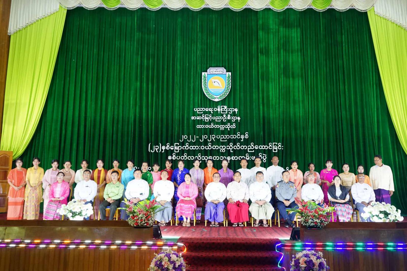 ဆက်လက်၍ ဒုတိယပါမောက္ခချုပ် ဒေါက်တာမိမိကြီးက စာတမ်းဖတ်ပွဲနှင့် ပိုစတာပြပွဲပြုလုပ်ရခြင်း၏ ရည်ရွယ်ချက်အား ရှင်းလင်းပြောကြားပြီး ကျောင်းသူများက တေးသရုပ်ဖော်အက၊ Fitness Dance အကဖြင့် ဖျော်ဖြေတင်ဆက်ကာ တိုင်းဒေသကြီးဝန်ကြီးချုပ်က သီဆိုဖျော်ဖြေသော ကျောင်းသား/သူများအား ဂုဏ်ပြုဆုငွေကျပ်(၄)သိန်း ပေးအပ်ချီးမြှင့်သည်။