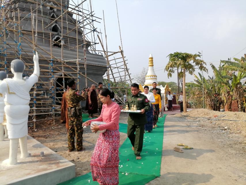 အခမ်းအနားသို့ မြို့နယ်သံဃနာယကဆရာတော်များ၊ ဒကစ (ပြည်) မှဒေသကွက်ကဲရေးမှူး ဗိုလ်မှူးချုပ် အောင်နိုင်ဦး၊ အမတ(၅၀၉) တပ်ရင်းမှူး ဒုတိယဗိုလ်မှူးကြီး မင်းနိုင်စိုးနှင့်တပ်ဖွဲ့ဝင်များ၊ မြို့နယ်စီမံအုပ်ချုပ်ရေးအဖွဲ့ဥက္ကဋ္ဌ ဦးဟံဝင်းအောင် နှင့်အဖွဲ့ဝင်များ၊ မြို့နယ်အဆင့်ဌာနဆိုင်ရာများ၊ နယ်မြေလုံခြုံရေးတပ်ဖွဲ့ဝင်များ၊ စစ်မှုထမ်းဟောင်း အဖွဲ့ဝင်များ၊ ဆည်ကြီးကုန်းကျေးရွာအုပ်စု အုပ်ချုပ်ရေးမှူးရုံးအဖွဲ့ဝင်များ တက်ရောက်ခဲ့ကြပြီး မြို့နယ်သံဃာတော်များထံမှ ငါးပါးသီလတရားတော်နာယူဆောက်တည်ပြီး ဌာပနာထည့်သွင်းပူဇော်မည့်ပစ္စည်းများကို စေတီတော်အား လက်ယာရစ် (၃)ပတ် လှည့်လည်ပူဇော်၍ လောကသရဖူစေတီတော်မြတ်ကြီး ဌာပနာတိုက်အတွင်းသို့ ထည့်သွင်းပူဇော်ခဲ့ကြောင်း သိရသည်။