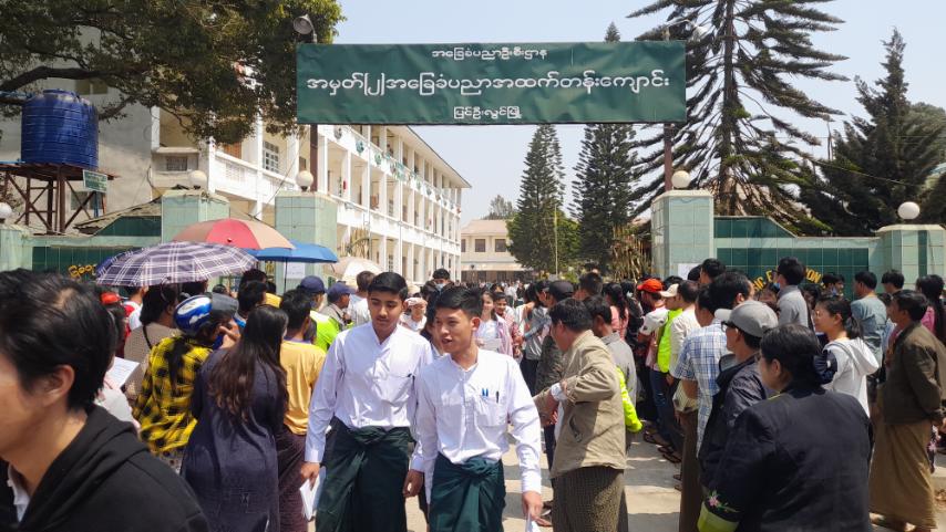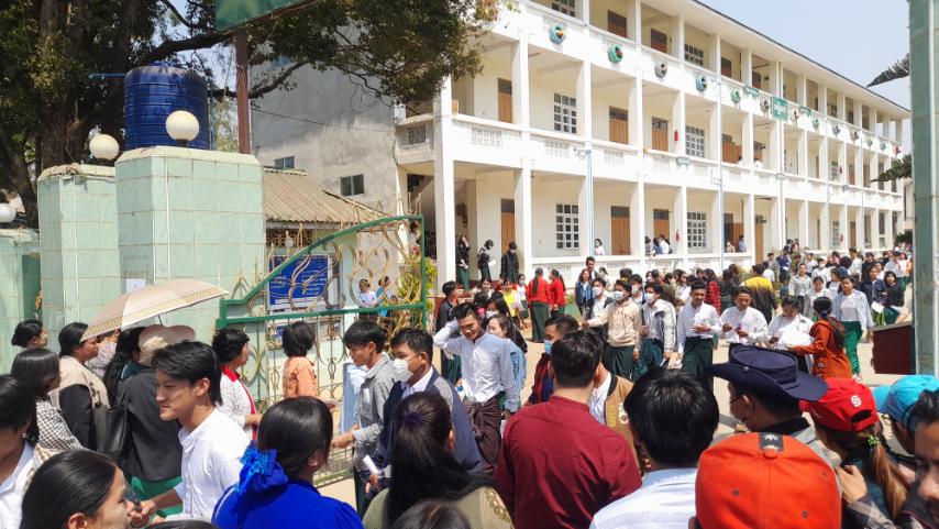 ၂၀၂၃ ခုနှစ် တက္ကသိုလ်ဝင်စာမေးပွဲကို မတ်လ ၈ ရက်နေ့တွင် စတင်ကျင်းပခဲ့ရာ ယနေ့တွင် သင်္ချာစာဘာသာရပ်ကို ဖြေဆိုကြခြင်းဖြစ်သည်။ ဦးစွာစာမေးပွဲဖြေဆိုခြင်းမပြုမီ ဆရာ/ဆရာမများက စာမေးပွဲဖြေဆိုကြမည့် ကျောင်းသား၊ ကျောင်းသူများအား စာမေးပွဲဖြေဆိုခွင့်ကတ်များ မှန်/မမှန် စစ်ဆေးခြင်းနှင့် လိုအပ်သည့် စစ်ဆေးမှုများကို စာမေးပွဲစည်းမျဉ်းစည်းကမ်းများနှင့်အညီ စနစ်တကျ ဆောင်ရွက်ပေးသည်။
