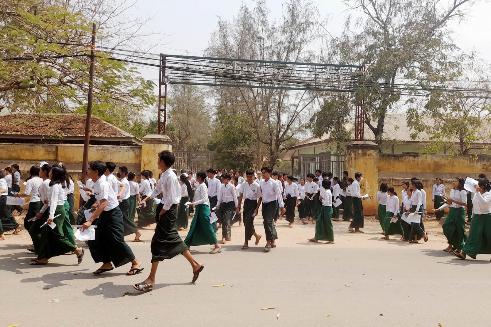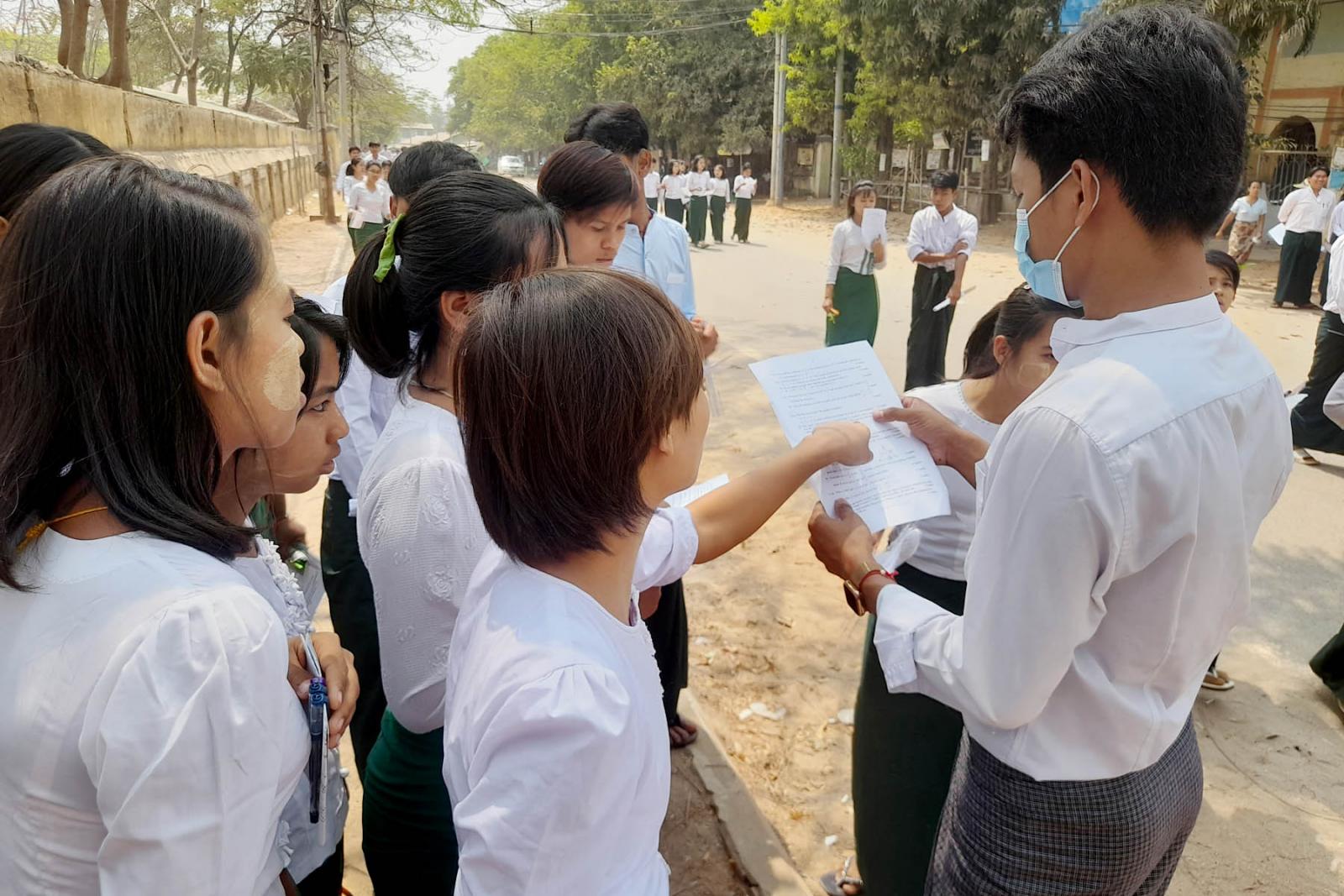 ယင်းသို့ ကျောင်းသား/ကျောင်းသူများ စိတ်အေးချမ်းသာစွာနှင့် ဘေးအန္တရာယ်ကင်းရှင်းစွာဖြင့် ဖြေဆိုနိုင်ရေးအတွက် ကျောင်းဝင်းအတွင်းနှင့်အပြင်များတွင် သက်ဆိုင်ရာလုံခြုံရေးအဖွဲ့ဝင်များ၊ ကျန်းမာရေးဝန်ထမ်းများ၊ မီးသတ်တပ်ဖွဲ့ဝင်များနှင့် ရပ်ကွက်ကျေးရွာအုပ်ချုပ်ရေးအဖွဲ့ဝင်များက စနစ်တကျ စောင့်ကြပ်ကြည့်ရှုပေးလျက်ရှိသည်။