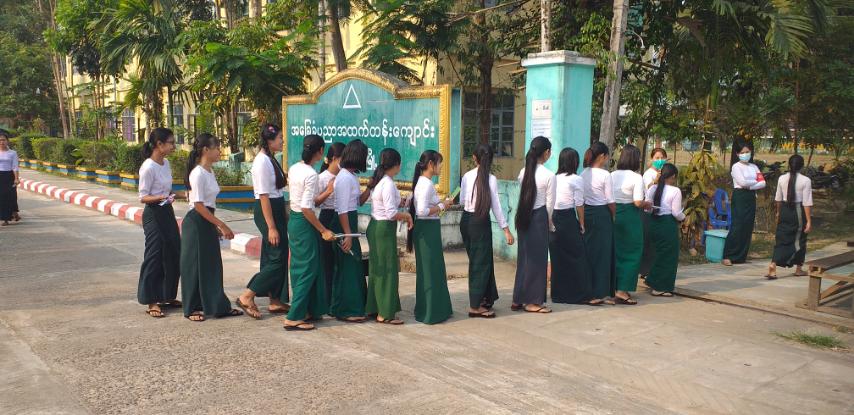 ၂၀၂၃ ခုနှစ် တက္ကသိုလ်ဝင်စာမေးပွဲကို မတ်လ ၈ ရက်နေ့တွင် စတင်ကျင်းပခဲ့ရာ ယနေ့တွင် သင်္ချာဘာသာရပ်ကို ဖြေဆိုခြင်းဖြစ်သည်။ ဦးစွာ စာမေးပွဲဖြေဆိုခြင်းမပြုမီ ဆရာ/ဆရာမများက စာမေးပွဲဖြေဆိုကြမည့် ကျောင်းသား၊ ကျောင်းသူများအား စာမေးပွဲဖြေဆိုခွင့်ကတ်များ မှန်/မမှန် စစ်ဆေးခြင်းနှင့် လိုအပ်သည့် စစ်ဆေးမှုများကို စာမေးပွဲစည်းမျဉ်းစည်းကမ်းများနှင့်အညီ စနစ်တကျ ဆောင်ရွက်ပေးသည်။
