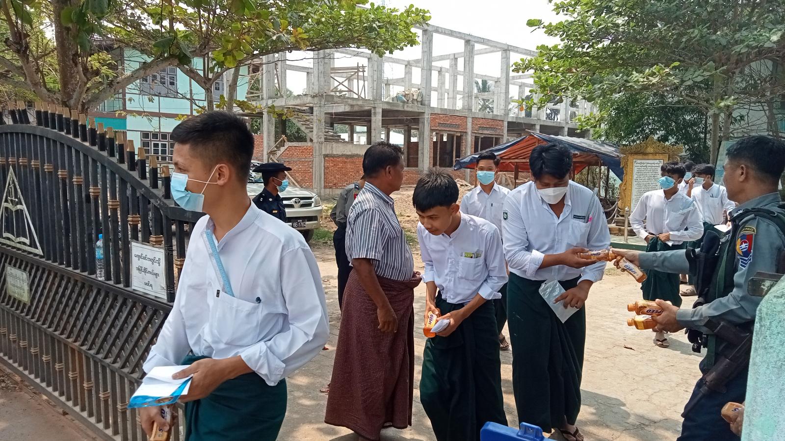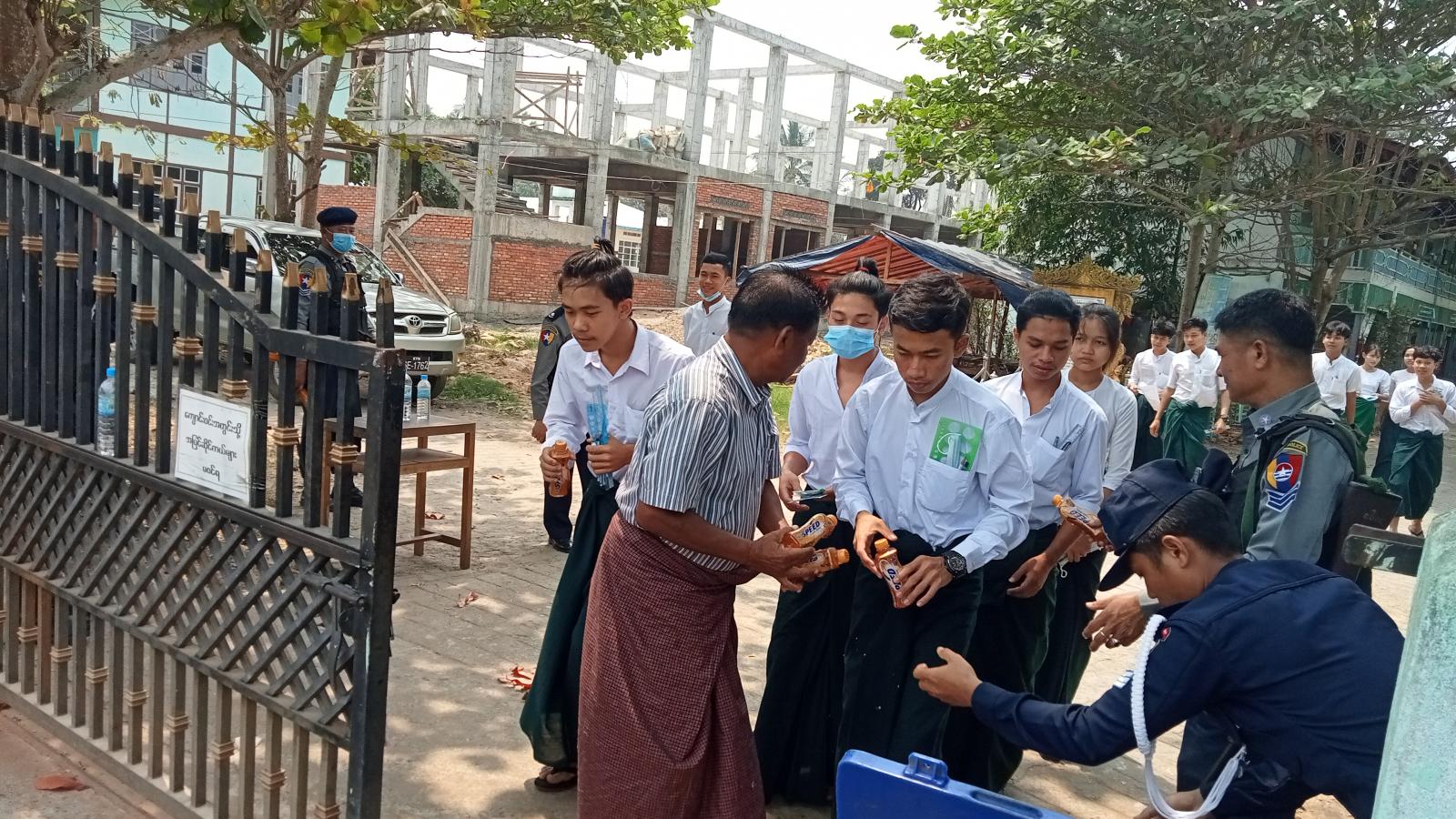 ယင်းသို့ ကျောင်းသား/ကျောင်းသူများ စိတ်အေးချမ်းသာစွာနှင့် ဘေးအန္တရာယ်ကင်းရှင်းစွာဖြင့် ဖြေဆိုနိုင်ရေးအတွက် ကျောင်းဝင်းအတွင်းနှင့်အပြင်များတွင် သက်ဆိုင်ရာလုံခြုံရေးအဖွဲ့ဝင်များ၊ ကျန်းမာရေးဝန်ထမ်းများ၊ မီးသတ်တပ်ဖွဲ့ဝင်များနှင့် ရပ်ကွက်ကျေးရွာအုပ်ချုပ်ရေးအဖွဲ့ဝင်များက စနစ်တကျ စောင့်ကြပ်ကြည့်ရှုပေးလျက်ရှိသည်။
