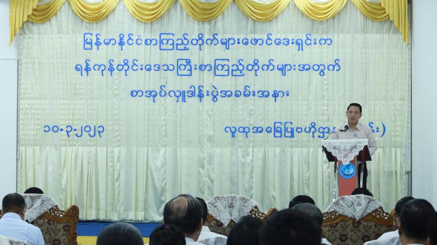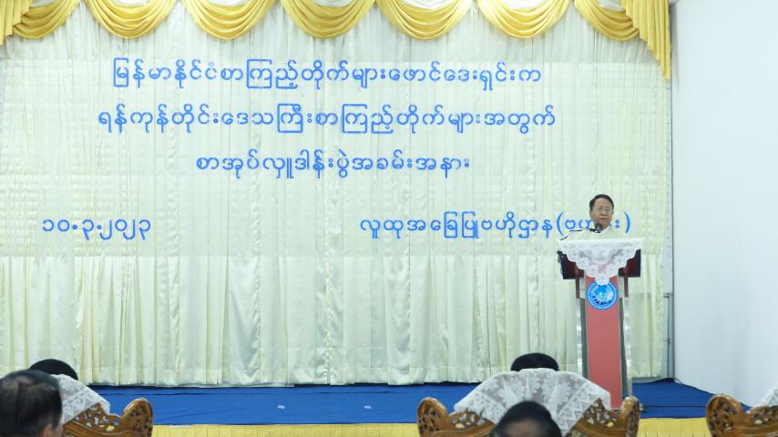 မြန်မာနိုင်ငံစာကြည့်တိုက်များဖောင်ဒေးရှင်းက ကျင်းပြုလုပ်သည့် ရန်ကုန်တိုင်းဒေသကြီး စာကြည့်တိုက်များအတွက် စာအုပ်လှူဒါန်းပွဲအခမ်းအနားကို ယမန်နေ့၊ နံနက် ၁၀ နာရီက ရန်ကုန်တိုင်းဒေသကြီး၊ ဗဟန်းမြို့နယ် လူထုအခြေပြုဗဟိုဌာန Community Centre ၌ ကျင်းပသည်။