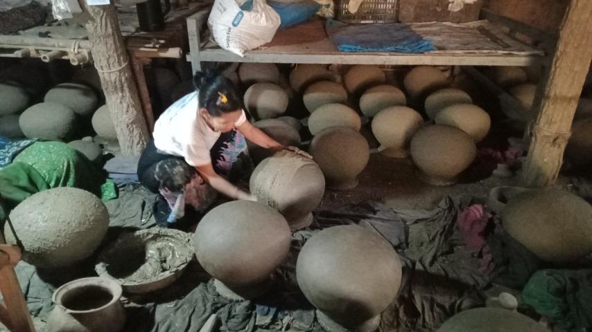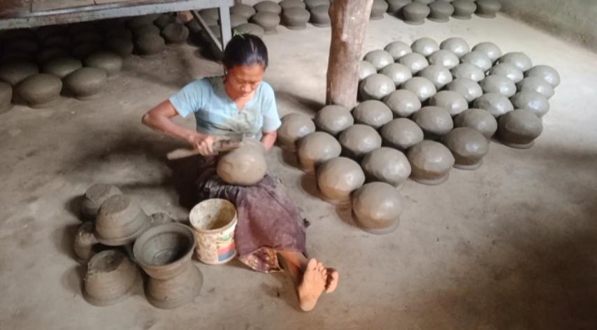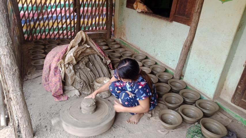 မြေအိုးလုပ်ငန်းကို လုပ်ကိုင်ရန် မိမိတို့၏လယ်မြေများမှ လှည်းများ၊ ထွေလာဂျီများ၊ သုံးဘီးများဖြင့် မိုးစပါးများရိတ်သိမ်း၊ ခြွေလှေ့အပြီး မိမိတို့၏နေအိမ်များတွင် မြေကြီးများကို စုဆောင်း၍ အိုးအကြမ်းထည်များလုပ်ကိုင်ထားရှိပြီး နေအိမ်များအတွင်း၌ လေမတိုး နေမပူအောင် ထားရှိမှသာလျင် လေကြောင်းမလိုက် မအက်ကွဲ ပို၍ခိုင်ခန့်ကြောင်း သိရသည်။ သောက်ရေအိုး သဲကမ်းအိုးများကို အကြမ်းထည်များပြုလုပ်ပြီးမှသာ ချောင်းသဲများအား လယ်မြေများဖြင့် ဖျော်စပ်၍ ရေအိုးအတွင်းအပြင်သုတ်ပြီး အရိပ်ထဲတွင် အခြောက်ခံပြီးမှ မိမိတို့ကျေးရွာပတ်ဝန်းကျင်နှင့် ဘုရားအနီးတွင် နှစ်ညတာမီးဖုတ်ရကြောင်း၊ မီးဖုတ်ရာတွင် ထင်းကိုအသုံးမပြုရဘဲ စပါးခွံ၊ သစ်ခွံ၊ ကောက်ရိုးများကို အသုံးပြု၍ မီးဖုတ်ပြီးတစ်ရက်ထား၍ ညနေပိုင်းတွင် မြေအိုအချောထည်များ ရရှိကြောင်း ပြုလုပ်သည့် အိုးများမှာ သဲသောက်ရေအိုး၊ မြူအိုး၊ ထန်းရေအိုး၊ ဟင်းချက်အိုးတို့ဖြစ်ပြီး အိုးများအား တပိုတွဲတပေါင်းလများတွင် လုပ်ကိုင်သည့် သဲသောက်ရေအိုးမှာ လူကြိုက်များ၍ အရောင်းရဆုံးဖြစ်ကာ ရှောက်တော၊ ပွင့်ဖြူ၊ ဆိပ်ဖြူနှင့် စလင်းမြို့နယ်အတွင်းရှိ ကျေးရွာများမှ ဝယ်ယူခြင်း ဖောက်သည်ပေးရကြောင်း သိရသည်။