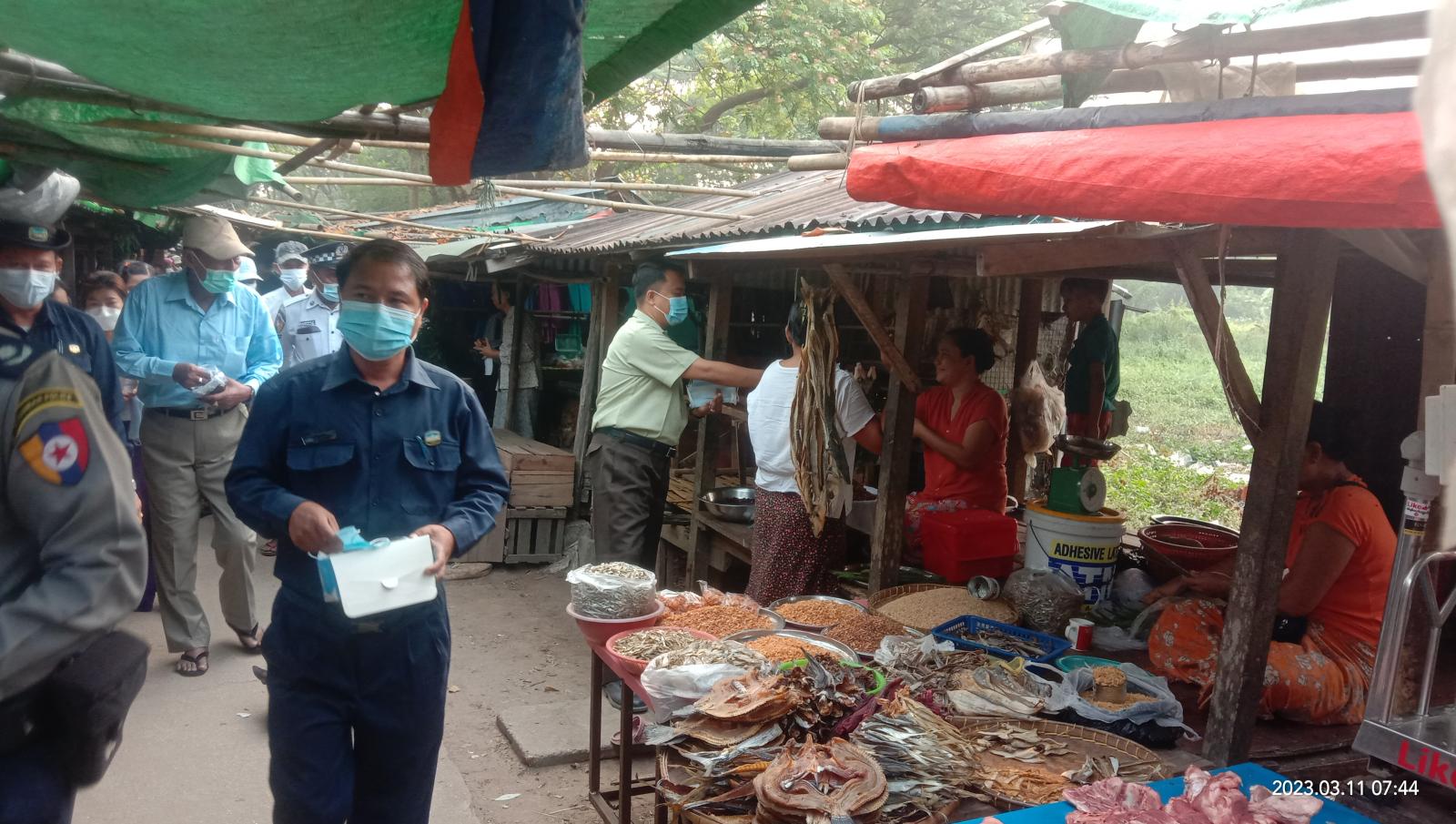 အသိပညာပေးဆောင်ရွက်ရာတွင် ပြည်သူများအပြင်သွားလာတိုင်းမဖြစ်မနေ (Mask)တပ်ဆင်ပြီးမှသာသွားလာရေး အသိပညာပေးဆောင်ရွက်ခဲ့ပြီး (Mask)မပါရှိသူများအား (Mask)အခုရေ(၁၀၀၀)ကို ပြည်သူများထံအခမဲ့ဖြန်ဝေပေးခဲ့ကြောင်း သိရသည်။