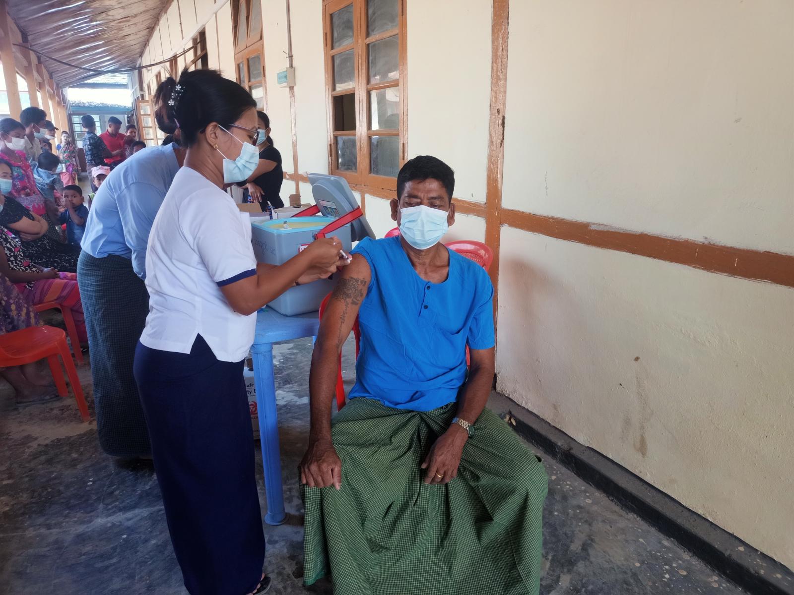 ရခိုင်ပြည်နယ်၊ မောင်တောခရိုင်၊ တောင်ပြိုလက်ဝဲမြို့၌ ကိုဗစ်-၁၉ ကာကွယ်ဆေးသုံးကြိမ် ထိုးနှံပြီးစီးသော ဦးတည်အုပ်စုတွင်ပါဝင်သူများအား ထပ်ဆောင်းကာကွယ်ဆေး ထိုးနှံပေးခြင်းကို ယနေ့နံနက်ပိုင်းက သတ်မှတ်စုရပ်နေရာဆေးရုံဝင်းအတွင်း၌ ကျန်းမာရေးဝန်ထမ်းများက ဆက်လက်ထိုးနှံပေးခဲ့ကြသည်။