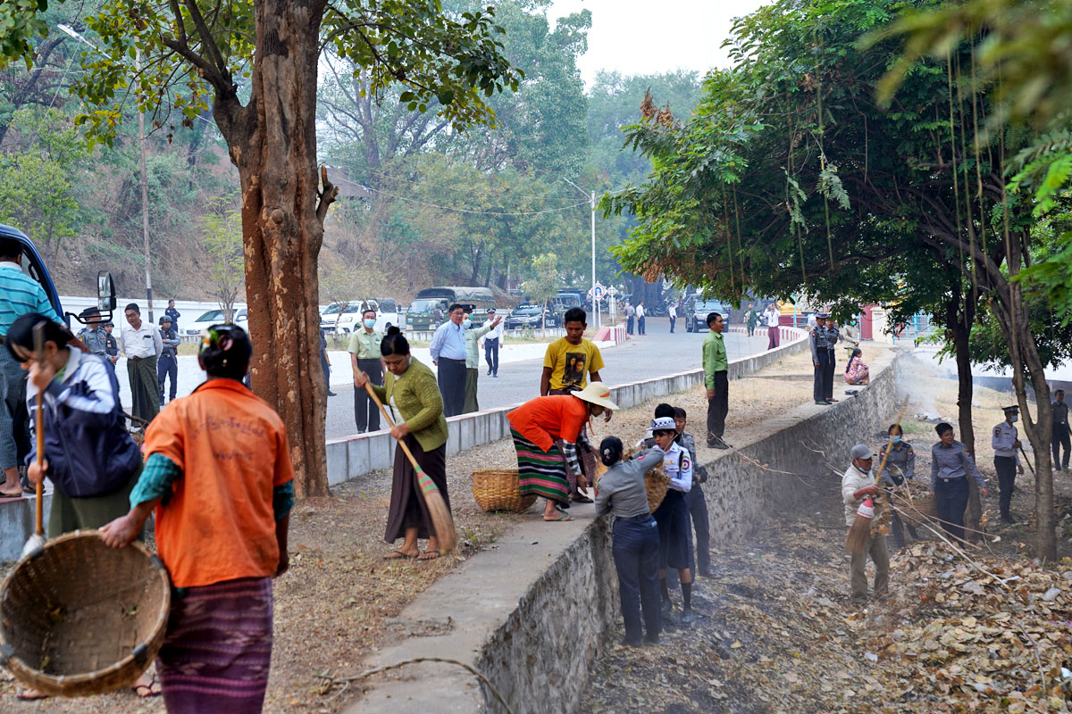 မကွေးတိုင်းဒေသကြီးအတွင်းရှိ ခရိုင်/မြို့နယ်အသီးသီးတွင် မြို့/ရွာသန့်ရှင်းသာယာလှပရေးအတွက် အပတ်စဉ်(စနေနေ့တိုင်း)စုပေါင်းသန့်ရှင်းရေးလုပ်ငန်းများ ဆောင်ရွက်လျက်ရှိရာ ယမန်နေ့နံနက် ၇ နာရီအချိန်က တိုင်းဒေသကြီး/ခရိုင်/မြို့နယ်ဌာနဆိုင်ရာများစုပေါင်း၍ မကွေးမြို့မြသလွန်ဘုရားကုန်းတော်၌ စုပေါင်းသန့်ရှင်းရေး ပြုလုပ်ဆောင်ရွက်နေမှုအား တိုင်းဒေသကြီးဝန်ကြီးချုပ်ဦးတင့်လွင်နှင့် တိုင်းဒေသကြီးအစိုးရအဖွဲ့ဝင်ဝန်ကြီးများ၊ ဌာနဆိုင်ရာ တာဝန်ရှိသူများ ကြည့်ရှုအားပေးသည်။