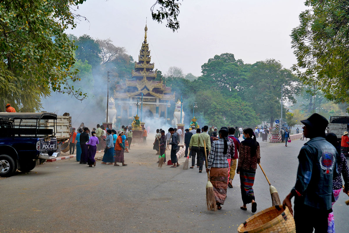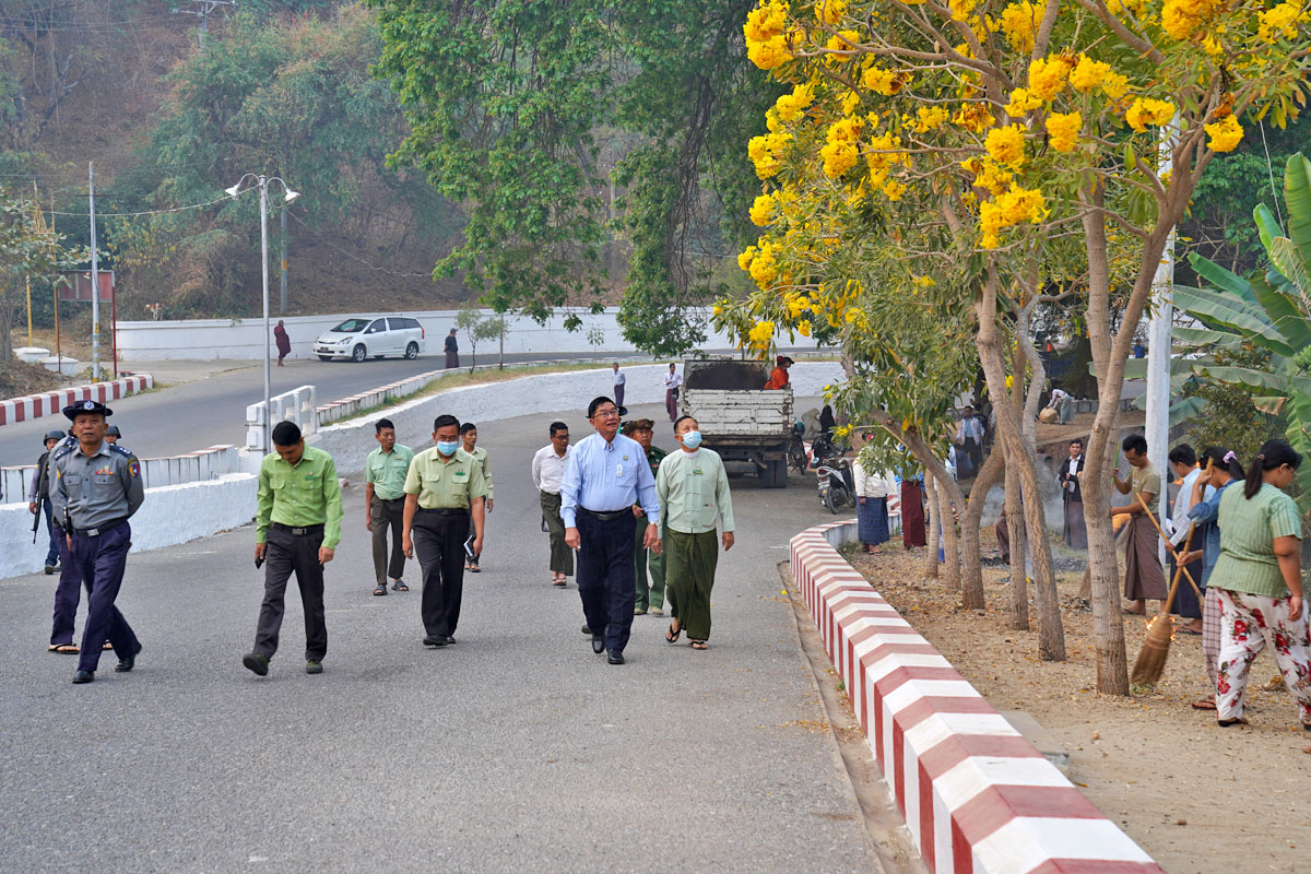 ထိုသို့ စုပေါင်းသန့်ရှင်းရေးပြုလုပ်ဆောင်ရွက်နေမှုအား မကွေးတိုင်ဒေသကြီးအစိုးရအဖွဲ့ ဝန်ကြီးချုပ်ဦးတင့်လွင်နှင့် အဖွဲ့ဝင်ဝန်ကြီးများ၊ တာဝန်ရှိသူများနှင့်အတူ သွားရောက်ကြည့်ရှုအားပေးကာ၊ တိုင်းဒေသကြီးဝန်ကြီးချုပ်က မိမိတို့ မကွေးမြို့သည် တိုင်းဒေသကြီး၏ မြို့တော်ဖြစ်သည်နှင့်အညီ မြို့အင်္ဂါရပ်နှင့်လျော်ညီစွာ မြို့ပတ်ဝန်းကျင် သန့်ရှင်းသာယာလှပရေးသည် အရေးကြီးပါကြောင်း၊ ဘုရားကုန်းတော်နှင့် လမ်းများသန့်ရှင်းနေပါက ဘုရားဖူးလာပြည်သူများ ဘုရားလာရောက် ဖူးမြော်ရာတွင် စိတ်ချမ်းမြေ့သာယာစွာ လာရောက်ဖူးမြော်နိုင်မည်ဖြစ်ပါကြောင်း ပြောကြားသည်။