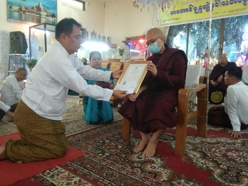 ဆက်လက်၍ မြို့နယ်ဩဝါဒစရိယဆရာတော်ကြီးများနှင့် မြို့နယ်သံဃနာယကဆရာတော်များအား လှူဖွယ်ပစ္စည်းများ ဆက်ကပ်လှူဒါန်းကြပြီး စာအောင်သံဃာတော်(၁၀၃)ပါးနှင့် သာသနာ့နွယ်ဝင် သီလရှင်ဆရာကြီး၊ ဆရာလေး(၁၁)ပါးတို့အား တာဝန်ရှိသူများမှ စာအောင်ဘွဲ့လက်မှတ်တံဆိပ်နှင့် စာအောင်ဆုများ အသီးသီးဆက်ကပ်လှူဒါန်းအပ်နှင်းခဲ့ကြသည်။ ထို့နောက် “ဗုဒ္ဓသာသနံ စိရံတိဌတု” သုံးကြိမ်ရွတ်ဆို၍ ပန်တျာသန့်ဇော်နှင့်အဖွဲ့က”အောင်စေပိုင်စေ” ဖြင့်သီကျူးပူဇော်ကာ အခမ်းအနားအား ရုပ်သိမ်းခဲ့ကြောင်း သတင်းရရှိသည်။