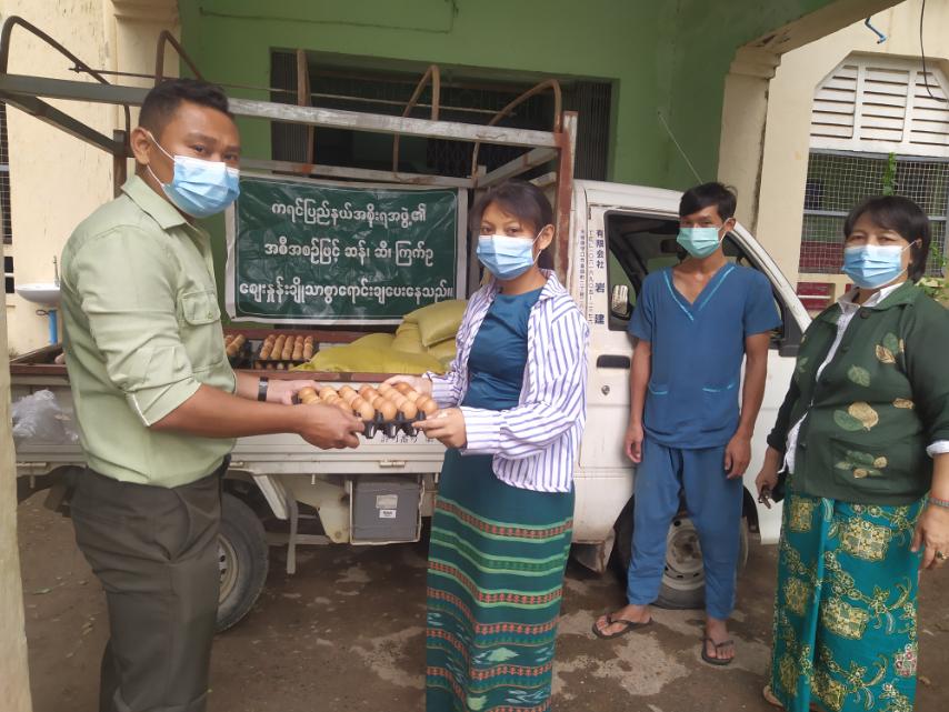 ကရင်ပြည်နယ်၊ ဘားအံမြို့နယ်တွင် ပြည်သူ့ကျန်းမာရေးစောင့်ရှောက်ပေးနေသော ကျန်းမာရေး ဝန်ထမ်းများ စားဝတ်နေရေး တစ်ဖက်တစ်လမ်းမှ အဆင်ပြေစေရေးအတွက် အခြေခံ စားသောက်ကုန်များအား သက်သာသော ဈေးနှုန်းဖြင့် ယမန်နေ့ မွန်းလွဲပိုင်းက ဘားအံမြို့ ပြည်သူ့ဆေးရုံကြီး၌ အခြေခံစားသောက်ကုန်များဖြစ်သည့် ဆန်၊ ဆီ၊ ကြက်ဥများအား ရောင်းချပေးခဲ့ကြောင်း သိရသည်။