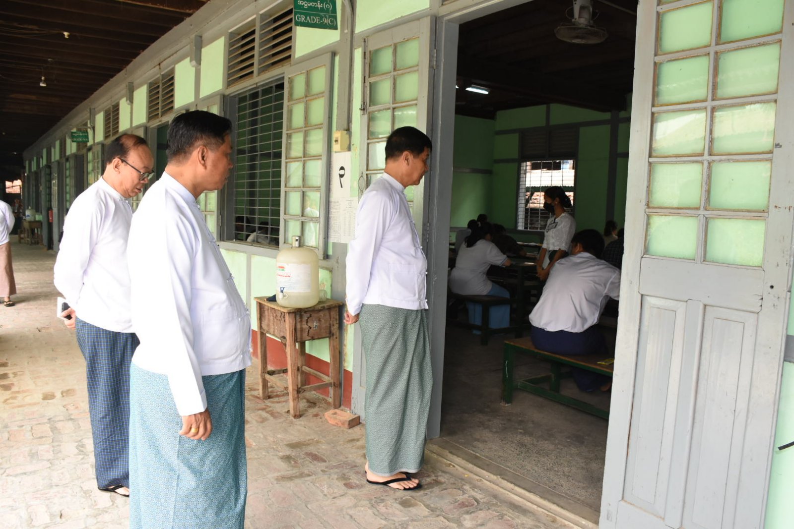 ထိုသို့ စစ်ဆေးနေစဥ် မန္တလေးတိုင်းဒေသကြီး ပညာရေးမှူး ဒုတိယညွှန်ကြားရေးမှူးချုပ် ဦးစန်းအောင်၊ မြို့နယ်ပညာရေးမှူး ဒေါ်သန်းသန်းဦး၊ စာစစ်ဌာန ကြီးကြပ်ရေးမှူး ဒေါ်နီနီ (အထက-၁၅၊ကျောင်းအုပ်ကြီး)နှင့် တာဝန်ရှိသူများမှ လိုက်လံရှင်းလင်းပြသခဲ့ပြီး ဝန်ကြီးချုပ်မှ ကျောင်းသား၊ ကျောင်းသူများ အေးချမ်းစွာဖြင့် စာမေးပွဲဖြေဆို နိုင်ရေး လိုအပ်သည်များ လမ်းညွှန်မှာကြားခဲ့သည်။